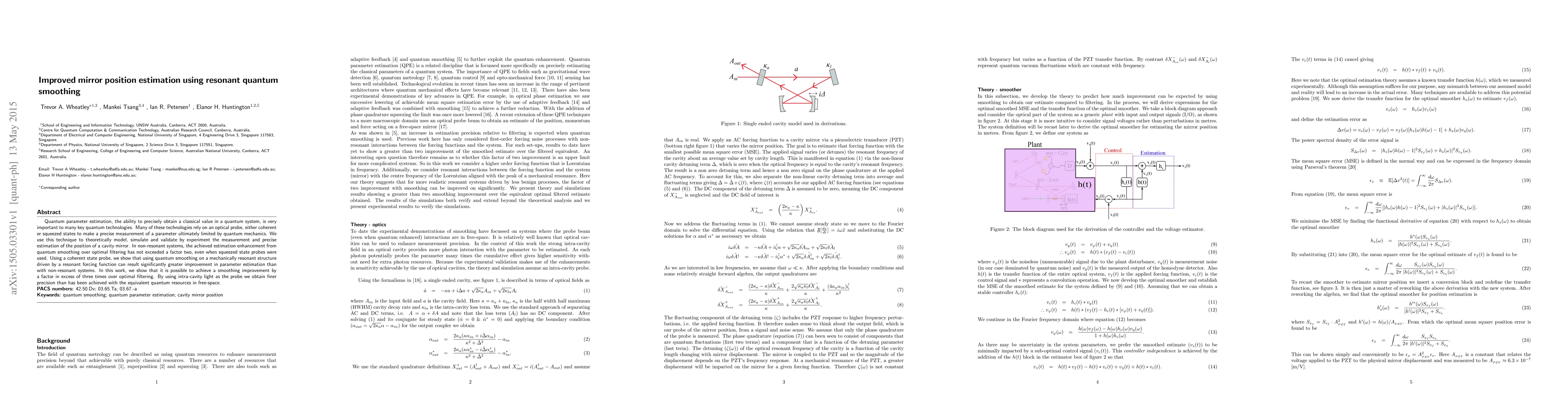 Quantum parameter estimation, the ability to precisely obtain a classical value in a quantum system, is very important to many key quantum technologies. Many of these technologies rely on an optical probe, either coherent or squeezed states to make a precise measurement of a parameter ultimately limited by quantum mechanics. We use this technique to theoretically model, simulate and validate by experiment the measurement and precise estimation of the position of a cavity mirror. In non-resonant systems, the achieved estimation enhancement from quantum smoothing over optimal filtering has not exceeded a factor two, even when squeezed state probes were used. Using a coherent state probe, we show that using quantum smoothing on a mechanically resonant structure driven by a resonant forcing function can result significantly greater improvement in parameter estimation than with non-resonant systems. In this work, we show that it is possible to achieve a smoothing improvement by a factor in excess of three times over optimal filtering. By using intra-cavity light as the probe we obtain finer precision than has been achieved with the equivalent quantum resources in free-space.