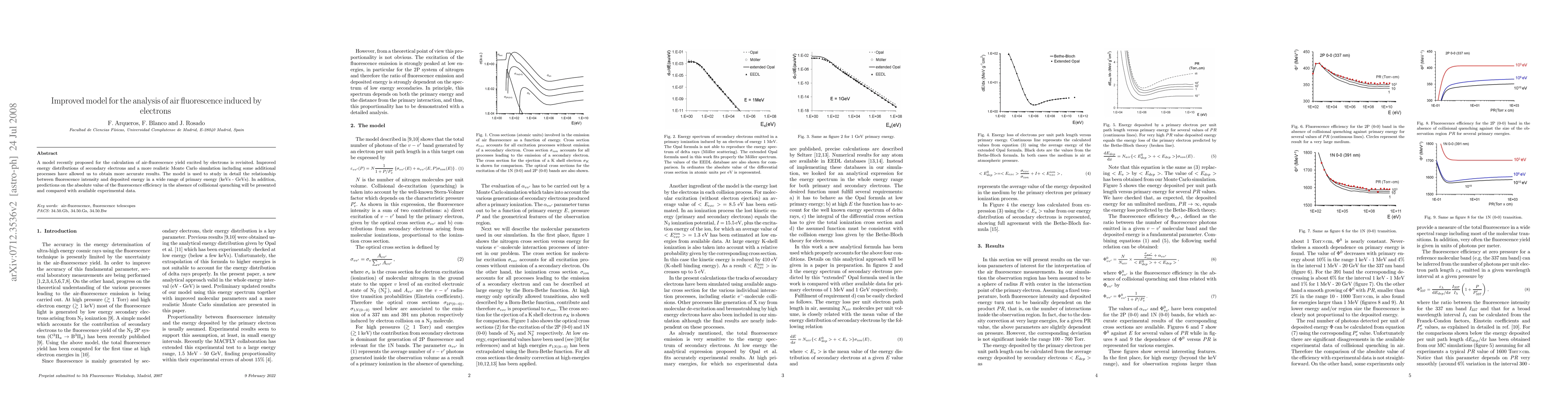 A model recently proposed for the calculation of air-fluorescence yield excited by electrons is revisited. Improved energy distributions of secondary electrons and a more realistic Monte Carlo simulation including some additional processes have allowed us to obtain more accurate results. The model is used to study in detail the relationship between fluorescence intensity and deposited energy in a wide range of primary energy (keVs - GeVs). In addition, predictions on the absolute value of the fluorescence efficiency in the absence of collisional quenching will be presented and compared with available experimental data.