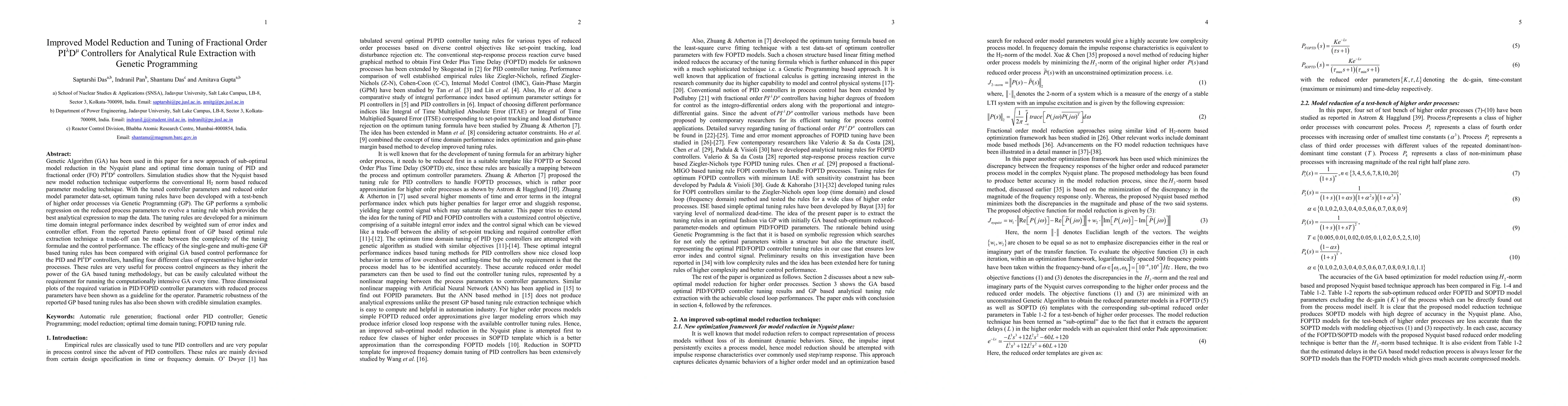 This paper proposes a novel approach using Genetic Algorithms for sub-optimal model reduction and optimal tuning of PID and fractional order PIλDμ controllers, demonstrating superior performance over conventional methods. Genetic Programming is employed to derive analytical tuning rules, offering a trade-off between complexity and control performance, and providing a robust solution for process control engineers.