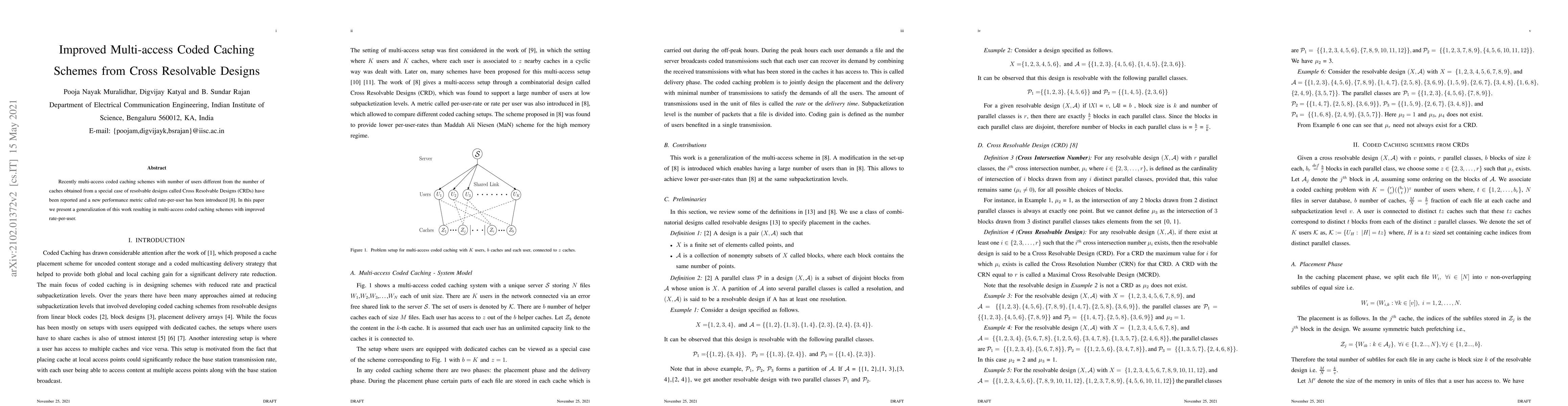 Recently multi-access coded caching schemes with number of users different from the number of caches obtained from a special case of resolvable designs called Cross Resolvable Designs (CRDs) have been reported and a new performance metric called rate-per-user has been introduced \cite{KNRarXiv}. In this paper we present a generalization of this work resulting in multi-access coded caching schemes with improved rate-per-user.