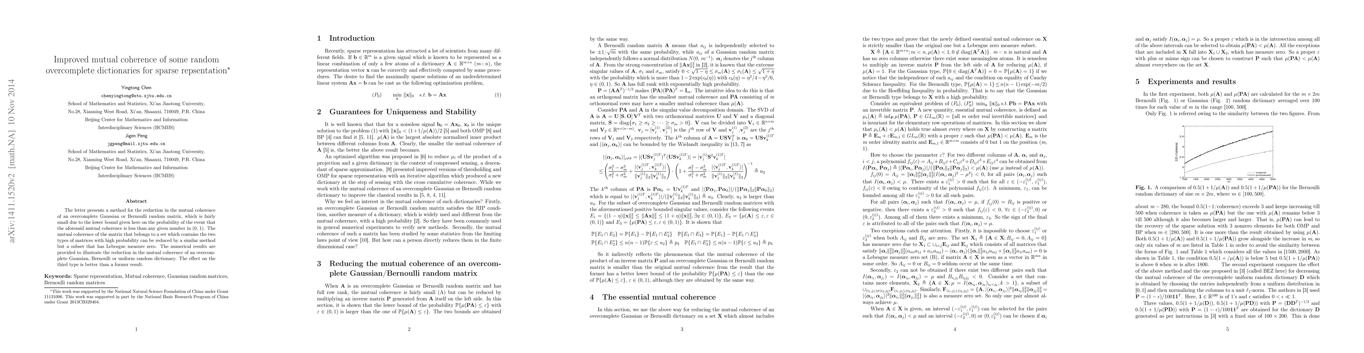 This paper proposes a method to reduce the mutual coherence of random overcomplete dictionaries, improving their suitability for sparse representation. Numerical results demonstrate effective reduction in mutual coherence for Gaussian, Bernoulli, and uniform random dictionaries, with particularly improved outcomes for the latter.