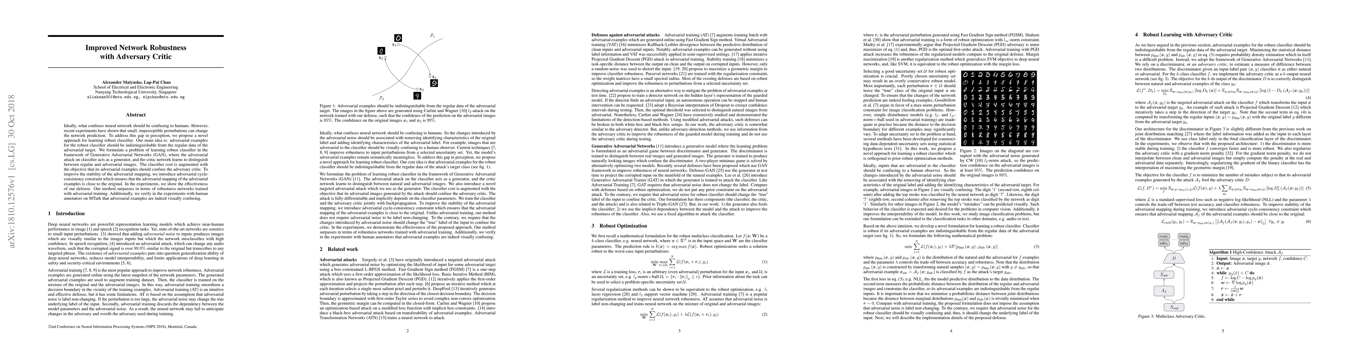 Ideally, what confuses neural network should be confusing to humans. However, recent experiments have shown that small, imperceptible perturbations can change the network prediction. To address this gap in perception, we propose a novel approach for learning robust classifier. Our main idea is: adversarial examples for the robust classifier should be indistinguishable from the regular data of the adversarial target. We formulate a problem of learning robust classifier in the framework of Generative Adversarial Networks (GAN), where the adversarial attack on classifier acts as a generator, and the critic network learns to distinguish between regular and adversarial images. The classifier cost is augmented with the objective that its adversarial examples should confuse the adversary critic. To improve the stability of the adversarial mapping, we introduce adversarial cycle-consistency constraint which ensures that the adversarial mapping of the adversarial examples is close to the original. In the experiments, we show the effectiveness of our defense. Our method surpasses in terms of robustness networks trained with adversarial training. Additionally, we verify in the experiments with human annotators on MTurk that adversarial examples are indeed visually confusing. Codes for the project are available at https://github.com/aam-at/adversary_critic.