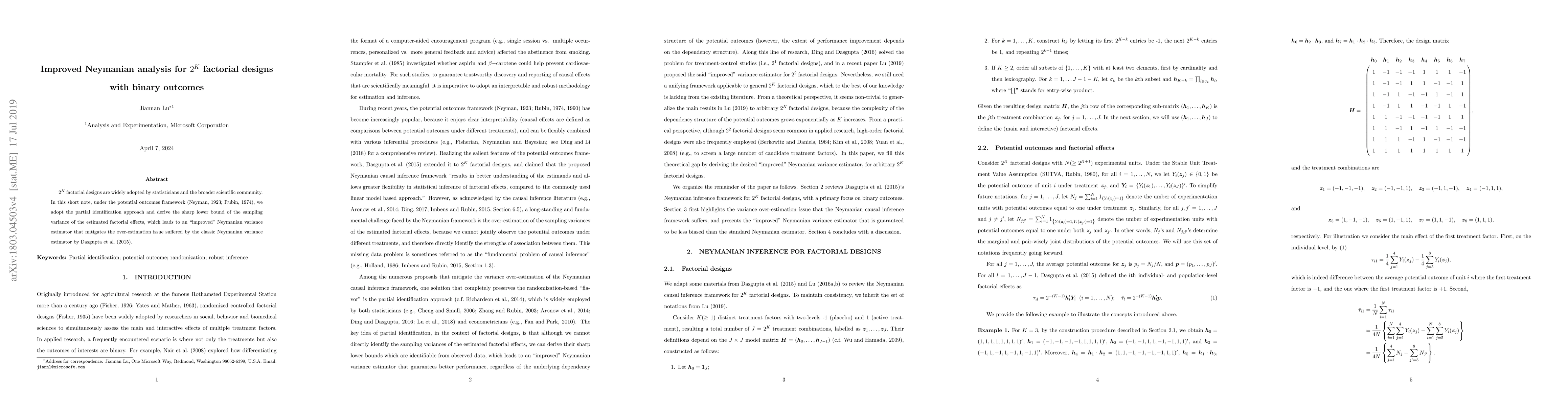 This paper proposes an improved Neymanian variance estimator for $2^K$ factorial designs with binary outcomes, utilizing the partial identification approach to derive a sharp lower bound for the sampling variance, thereby addressing the over-estimation issue of previous estimators.