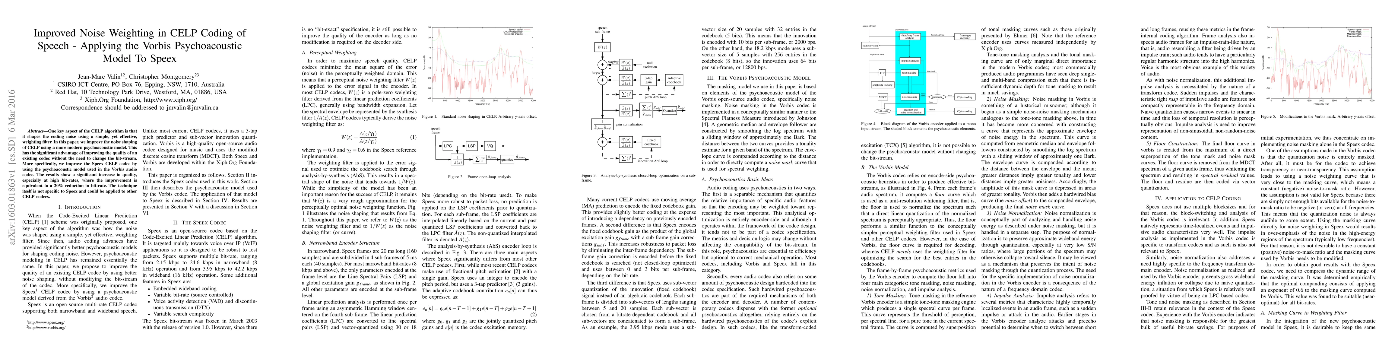 One key aspect of the CELP algorithm is that it shapes the coding noise using a simple, yet effective, weighting filter. In this paper, we improve the noise shaping of CELP using a more modern psychoacoustic model. This has the significant advantage of improving the quality of an existing codec without the need to change the bit-stream. More specifically, we improve the Speex CELP codec by using the psychoacoustic model used in the Vorbis audio codec. The results show a significant increase in quality, especially at high bit-rates, where the improvement is equivalent to a 20% reduction in bit-rate. The technique itself is not specific to Speex and could be applied to other CELP codecs.