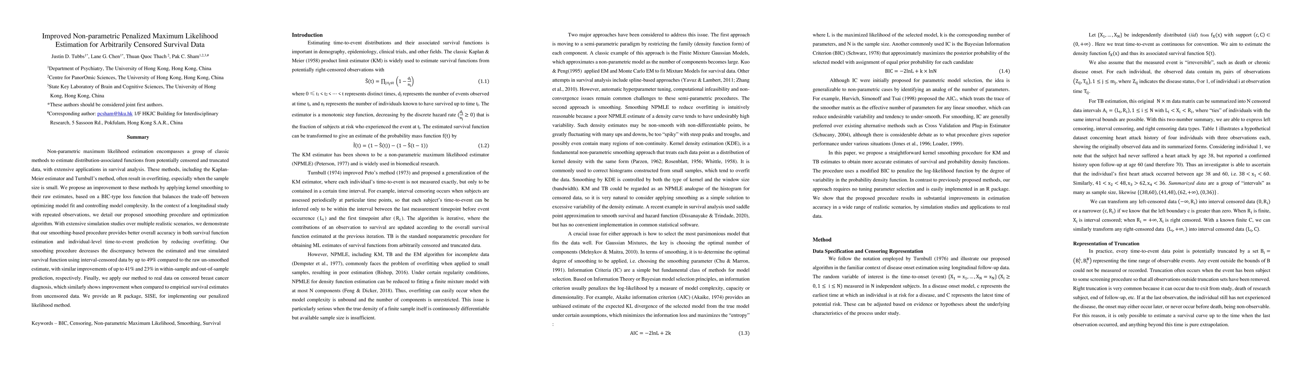 The research proposes an improvement to non-parametric maximum likelihood estimation (NPMLE) methods for survival data analysis by applying kernel smoothing based on a BIC-type loss function to reduce overfitting, especially in small sample sizes.