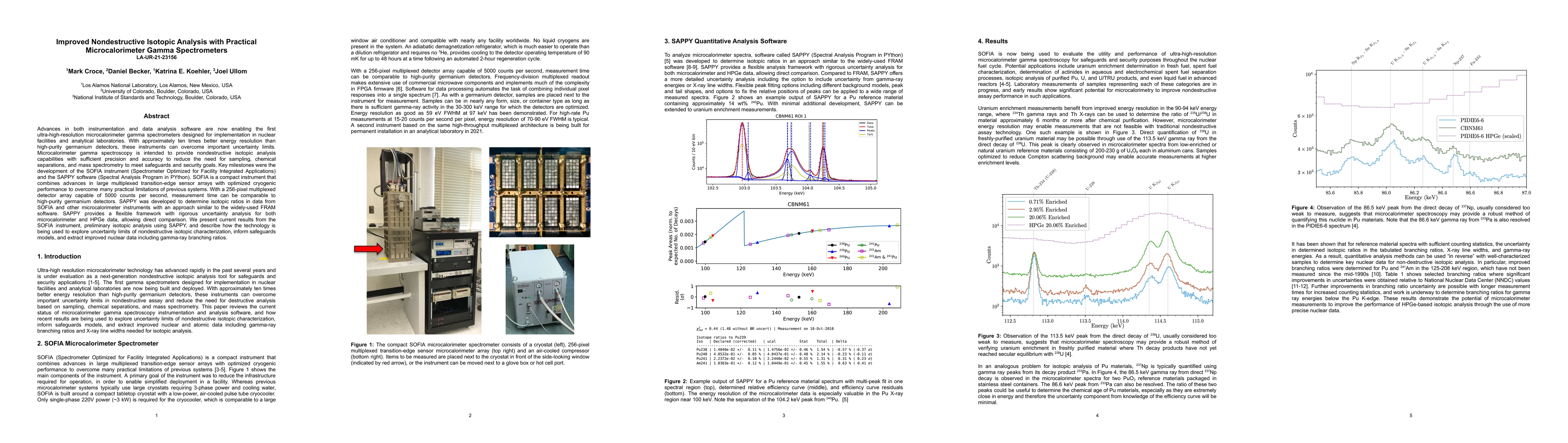 This paper introduces ultra-high-resolution microcalorimeter gamma spectrometers, exemplified by the SOFIA instrument, which offer ten times better energy resolution than high-purity germanium detectors, thus enhancing nondestructive isotopic analysis. The SAPPY software complements SOFIA, enabling precise isotopic ratio determinations and facilitating improved nuclear data extraction.