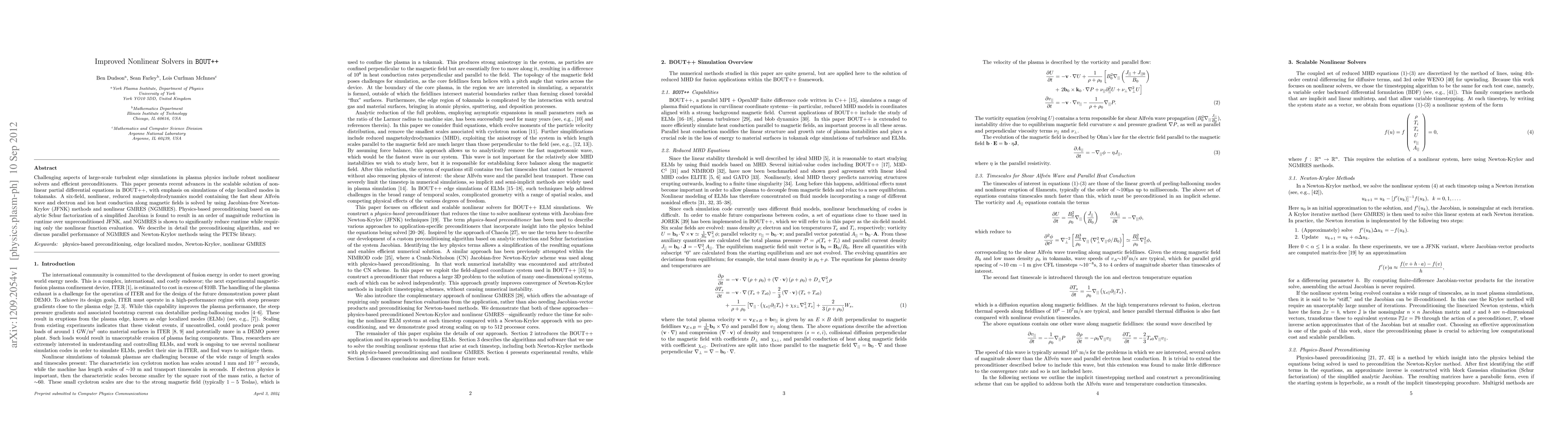 Researchers improved nonlinear solvers for plasma physics simulations, reducing runtime by orders of magnitude using physics-based preconditioning and Jacobian-free methods.
