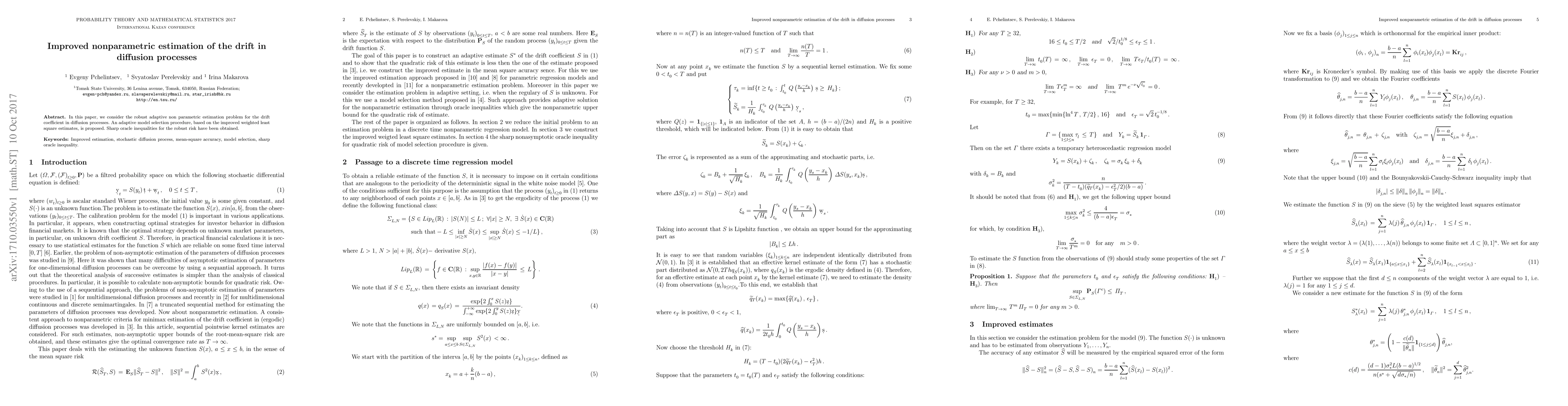 This paper proposes an adaptive model selection procedure for robustly estimating the drift coefficient in diffusion processes using improved weighted least square estimates, and establishes sharp oracle inequalities for the robust risk.