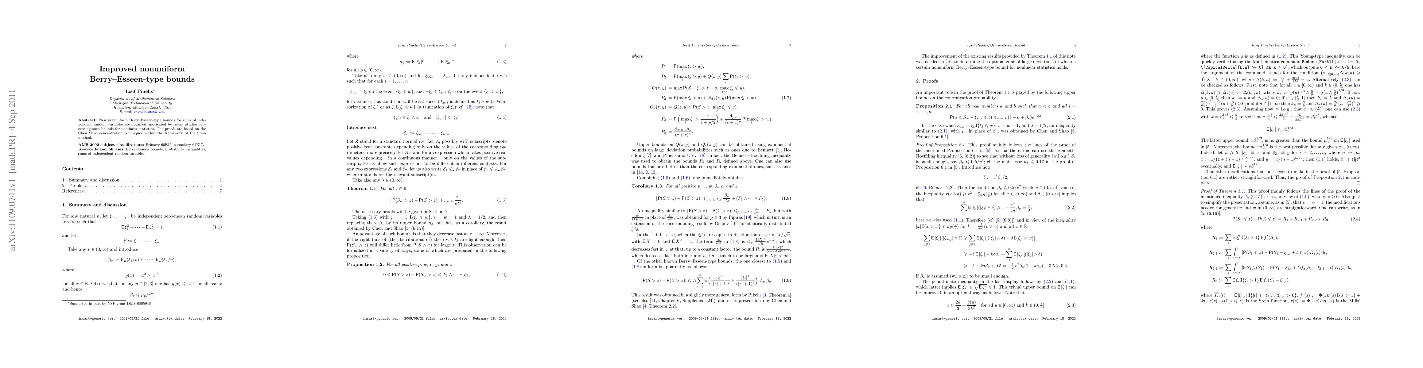 This paper presents enhanced nonuniform Berry-Esseen bounds for sums of independent random variables, employing Chen-Shao concentration techniques and the Stein method for proofs, inspired by research into nonlinear statistics.