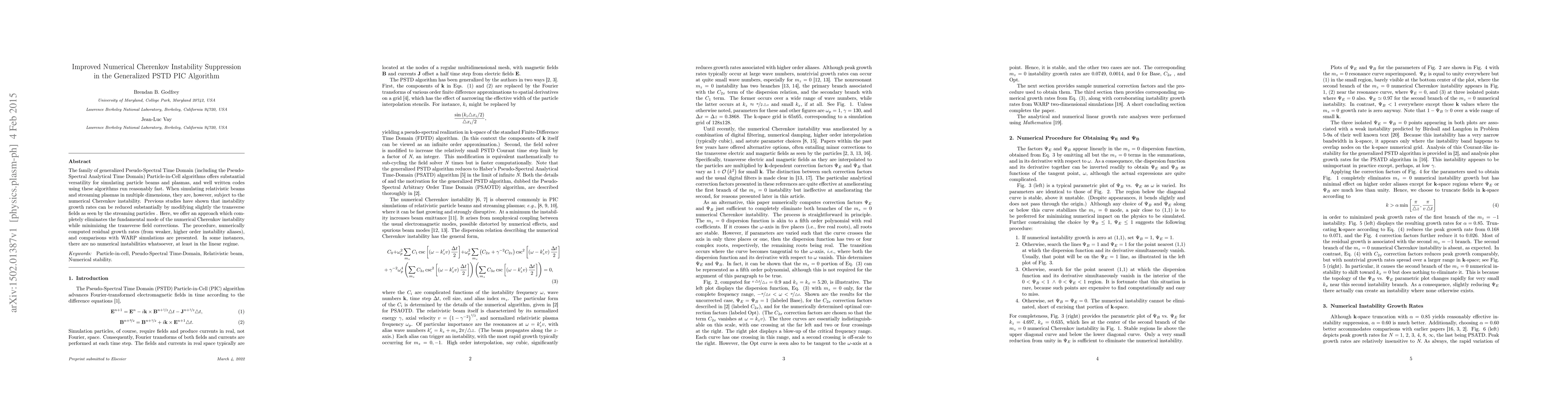 The family of generalized Pseudo-Spectral Time Domain (including the Pseudo-Spectral Analytical Time Domain) Particle-in-Cell algorithms offers substantial versatility for simulating particle beams and plasmas, and well written codes using these algorithms run reasonably fast. When simulating relativistic beams and streaming plasmas in multiple dimensions, they are, however, subject to the numerical Cherenkov instability. Previous studies have shown that instability growth rates can be reduced substantially by modifying slightly the transverse fields as seen by the streaming particles . Here, we offer an approach which completely eliminates the fundamental mode of the numerical Cherenkov instability while minimizing the transverse field corrections. The procedure, numerically computed residual growth rates (from weaker, higher order instability aliases), and comparisons with WARP simulations are presented. In some instances, there are no numerical instabilities whatsoever, at least in the linear regime.