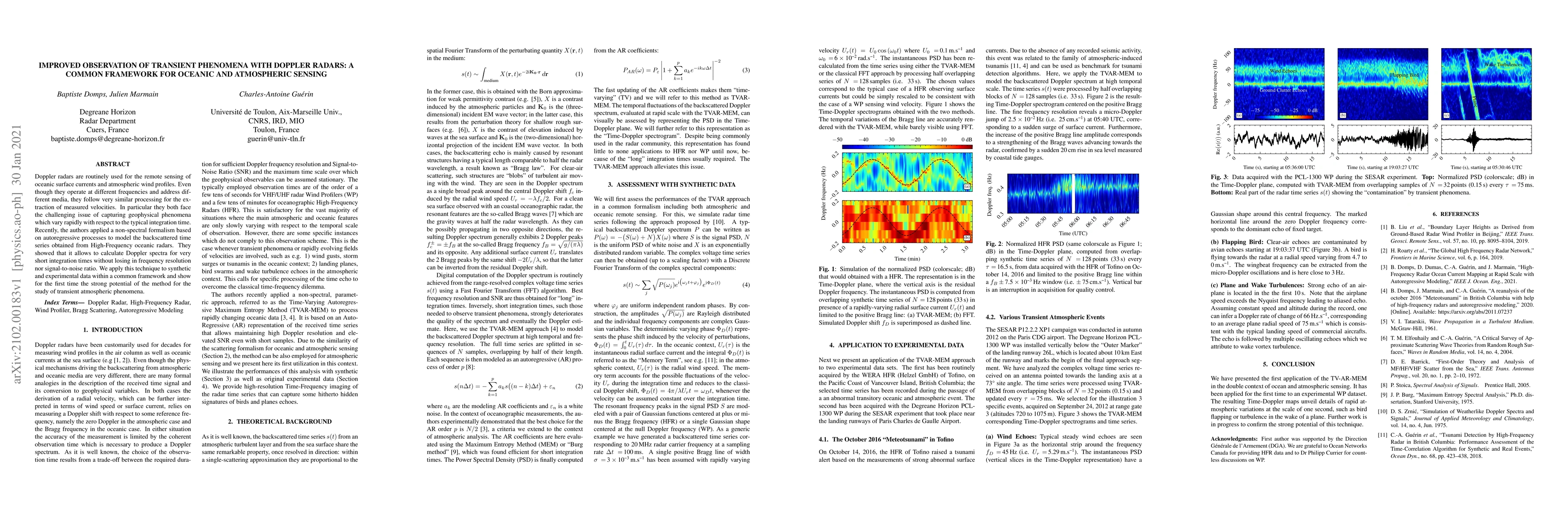 This paper proposes a unified framework for Doppler radars used in oceanic and atmospheric sensing, demonstrating the effectiveness of a non-spectral autoregressive modeling technique for capturing transient phenomena. The method enhances frequency resolution and signal-to-noise ratio, showing potential for studying rapidly changing atmospheric events.
