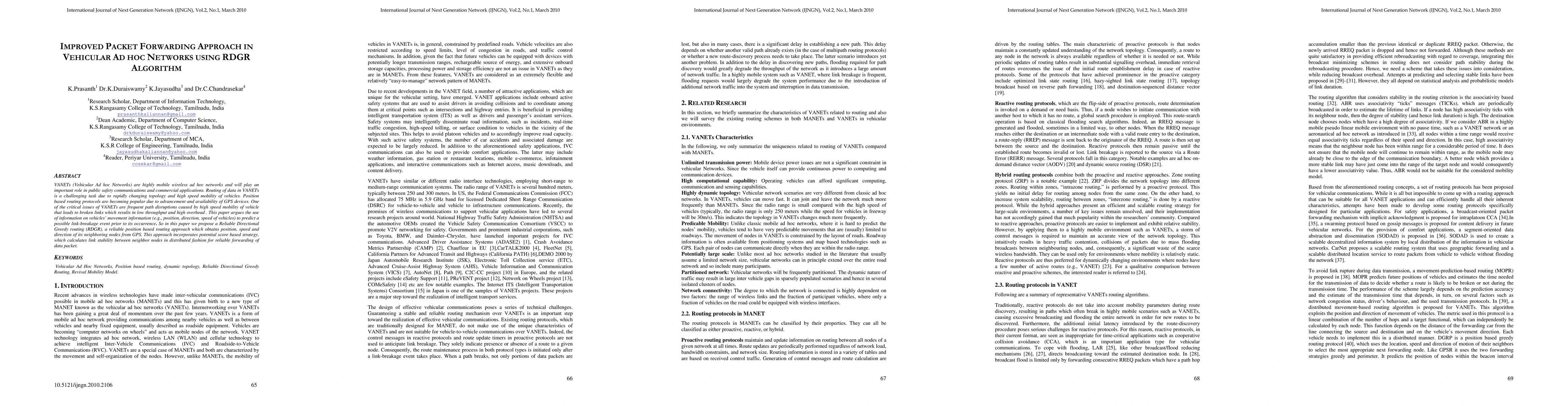 This paper proposes the Reliable Directional Greedy routing (RDGR) algorithm to improve packet forwarding in Vehicular Ad Hoc Networks (VANETs) by predicting link-breakage events using vehicles' movement information. RDGR calculates link stability between nodes to ensure reliable data packet forwarding despite the high mobility and rapidly changing topology of VANETs.