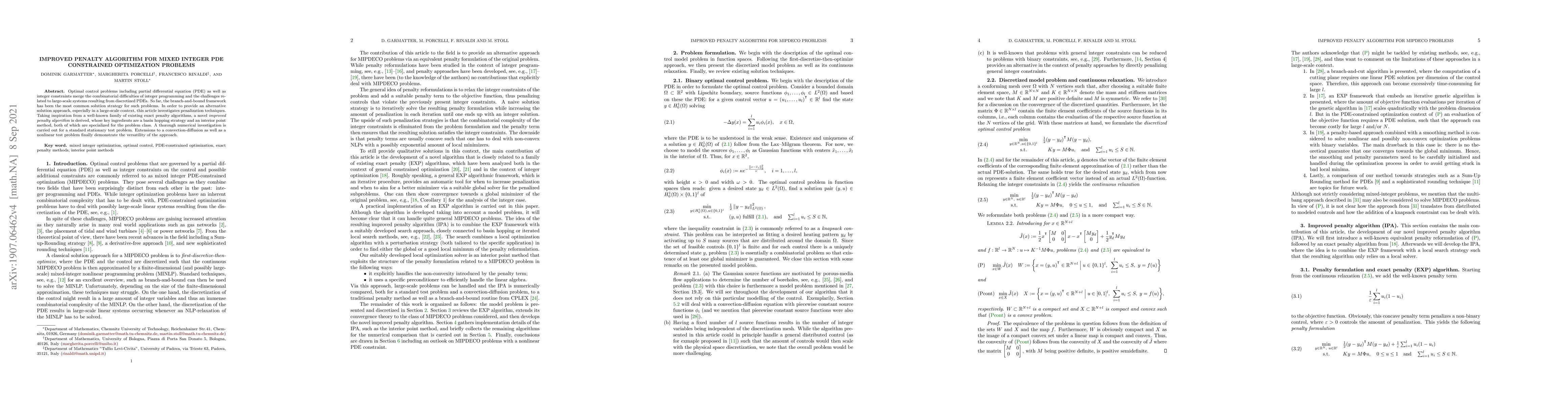 A new penalty algorithm is proposed for mixed integer PDE constrained optimization problems, combining a basin hopping strategy with an interior point method to improve efficiency in large-scale systems.