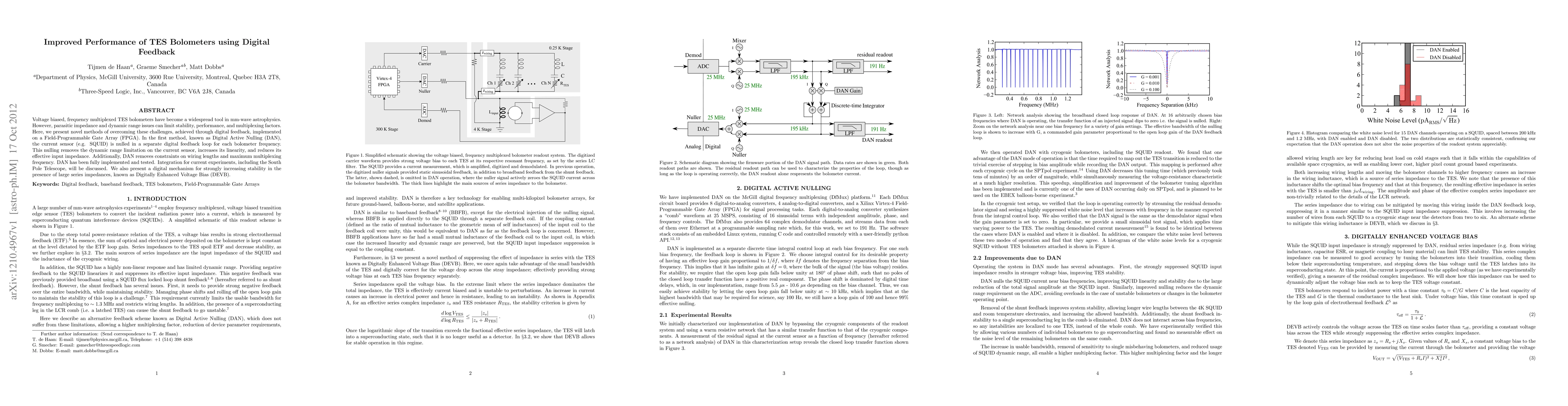 This paper introduces digital feedback techniques, including Digital Active Nulling (DAN) and Digitally Enhanced Voltage Bias (DEVB), to enhance the performance of TES bolometers, addressing parasitic impedance and dynamic range issues, and improving stability and multiplexing capabilities. DAN nulls the current sensor in a separate digital feedback loop, while DEVB increases stability against large series impedances.
