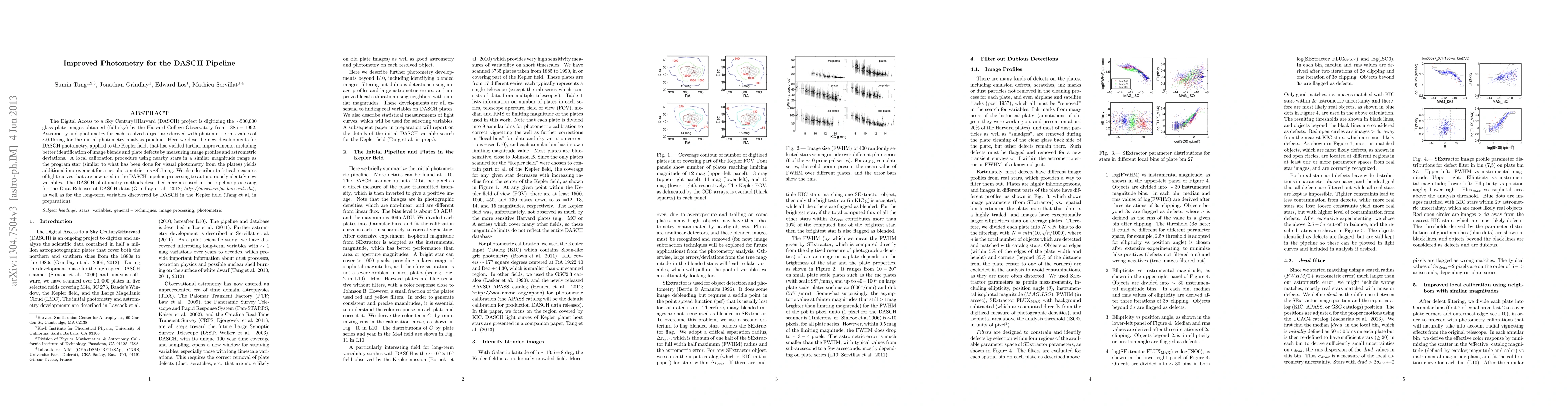 The Digital Access to a Sky Century@Harvard (DASCH) project is digitizing the ~500,000 glass plate images obtained (full sky) by the Harvard College Observatory from 1885-1992. Astrometry and photometry for each resolved object are derived with photometric rms values of ~0.15mag for the initial photometry analysis pipeline. Here we describe new developments for DASCH photometry, applied to the Kepler field, that has yielded further improvements, including better identification of image blends and plate defects by measuring image profiles and astrometric deviations. A local calibration procedure using nearby stars in a similar magnitude range as the program star (similar to what has been done for visual photometry from the plates) yields additional improvement for a net photometric rms ~0.1mag. We also describe statistical measures of light curves that are now used in the DASCH pipeline processing to autonomously identify new variables. The DASCH photometry methods described here are used in the pipeline processing for the Data Releases of DASCH data (Grindlay et al. 2012; http://dasch.rc.fas.harvard.edu), as well as for the long-term variables discovered by DASCH in the Kepler field (Tang et al, in preparation).