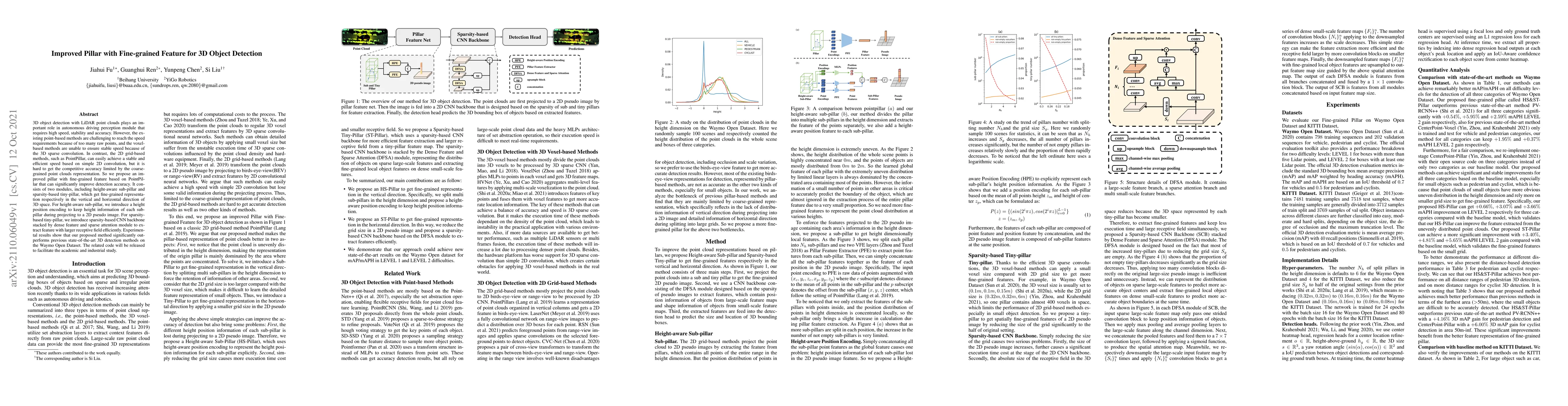 3D object detection with LiDAR point clouds plays an important role in autonomous driving perception module that requires high speed, stability and accuracy. However, the existing point-based methods are challenging to reach the speed requirements because of too many raw points, and the voxel-based methods are unable to ensure stable speed because of the 3D sparse convolution. In contrast, the 2D grid-based methods, such as PointPillar, can easily achieve a stable and efficient speed based on simple 2D convolution, but it is hard to get the competitive accuracy limited by the coarse-grained point clouds representation. So we propose an improved pillar with fine-grained feature based on PointPillar that can significantly improve detection accuracy. It consists of two modules, including height-aware sub-pillar and sparsity-based tiny-pillar, which get fine-grained representation respectively in the vertical and horizontal direction of 3D space. For height-aware sub-pillar, we introduce a height position encoding to keep height information of each sub-pillar during projecting to a 2D pseudo image. For sparsity-based tiny-pillar, we introduce sparsity-based CNN backbone stacked by dense feature and sparse attention module to extract feature with larger receptive field efficiently. Experimental results show that our proposed method significantly outperforms previous state-of-the-art 3D detection methods on the Waymo Open Dataset. The related code will be released to facilitate the academic and industrial study.