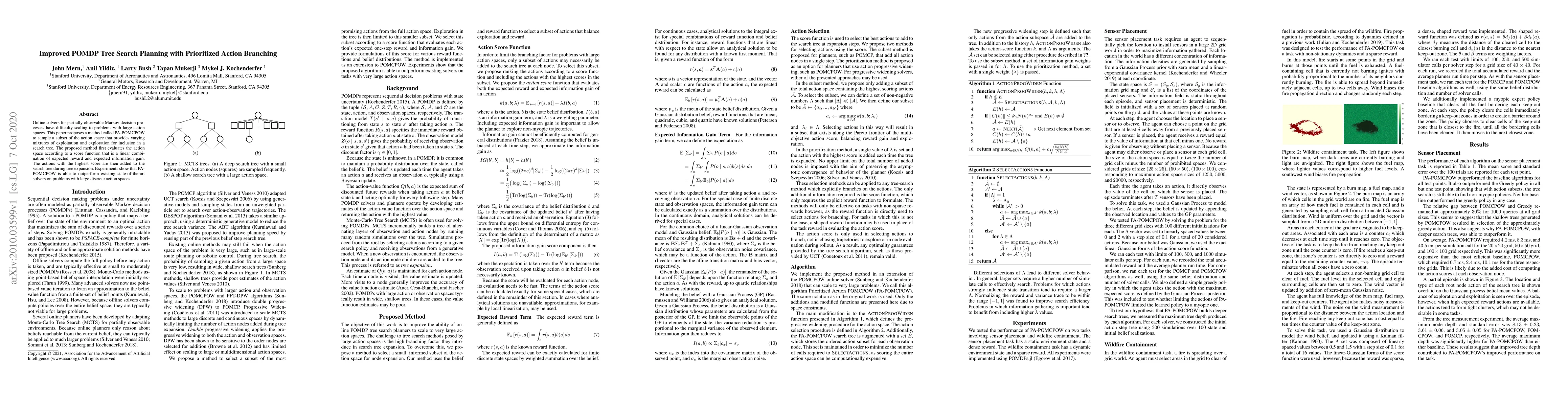 PA-POMCPOW improves POMDP tree search planning by prioritizing actions based on a score function combining expected reward and information gain, outperforming existing solvers in large discrete action spaces.