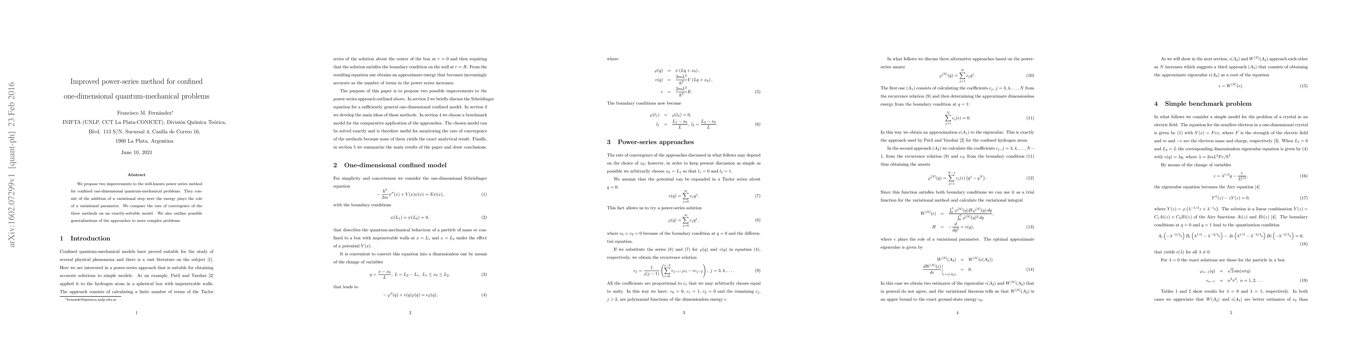 Researchers improved a power-series method for solving one-dimensional quantum-mechanical problems, adding a variational step to increase accuracy.