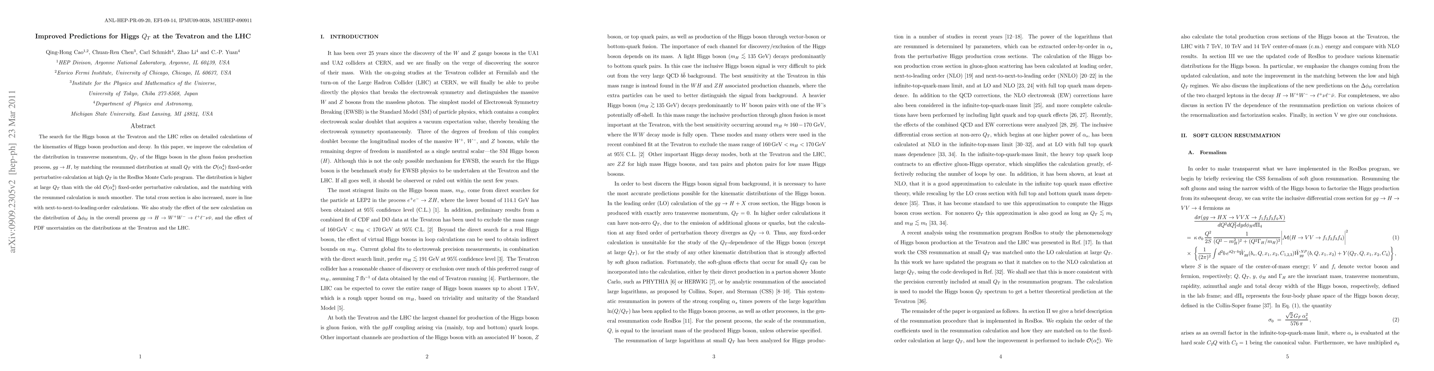 This paper enhances predictions for the Higgs boson's transverse momentum ($Q_T$) at the Tevatron and LHC by improving the calculation of its distribution in gluon fusion, achieving a smoother match between resummed and fixed-order perturbative calculations. The new method results in a higher $Q_T$ distribution and total cross section, aligning better with next-to-next-to-leading-order calculations.