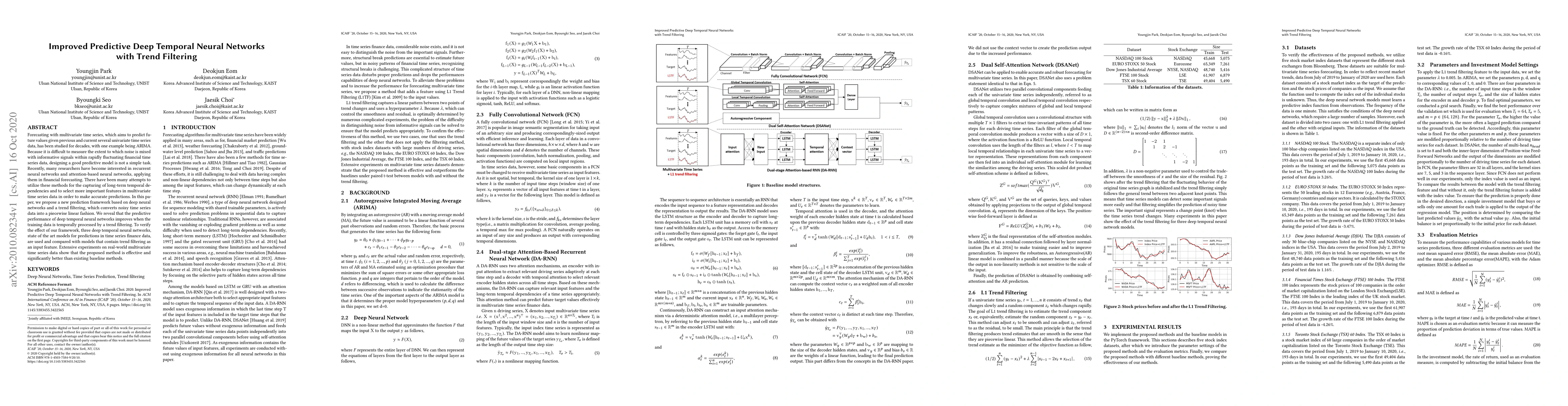 This paper proposes a predictive deep temporal neural network framework enhanced by trend filtering to improve the accuracy of financial time series forecasting. The trend filtering converts noisy data into a piecewise linear format, which enhances the performance of deep neural networks. Experiments demonstrate significant improvements over existing baseline methods.