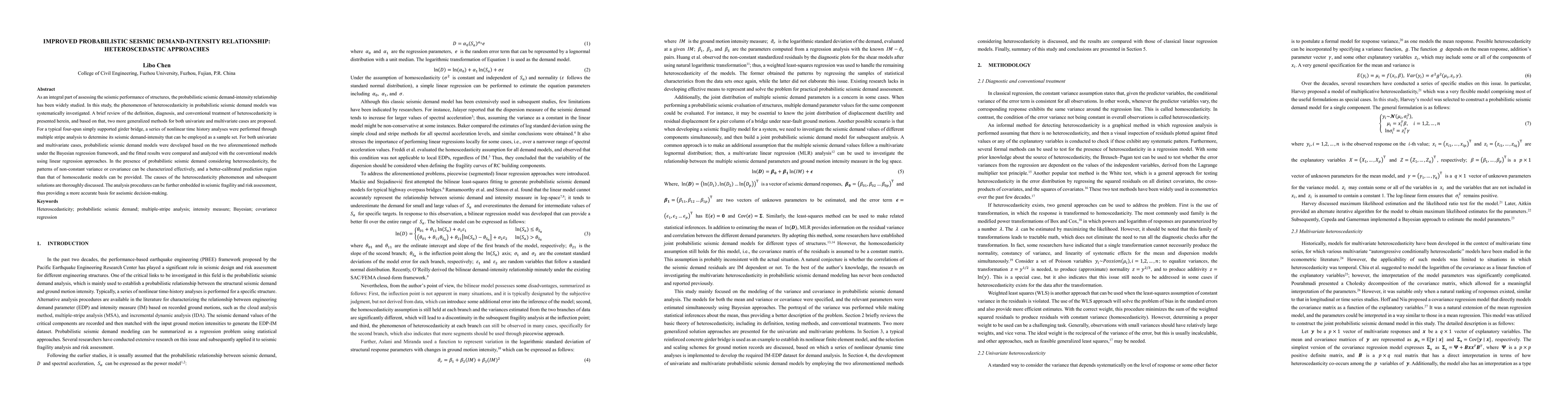 This study proposes generalized heteroscedastic approaches for probabilistic seismic demand-intensity relationships, improving upon conventional linear regression models. The new methods, applied to a four-span bridge, demonstrate better calibration and more accurate prediction of seismic demand, enhancing seismic performance assessment and decision-making.