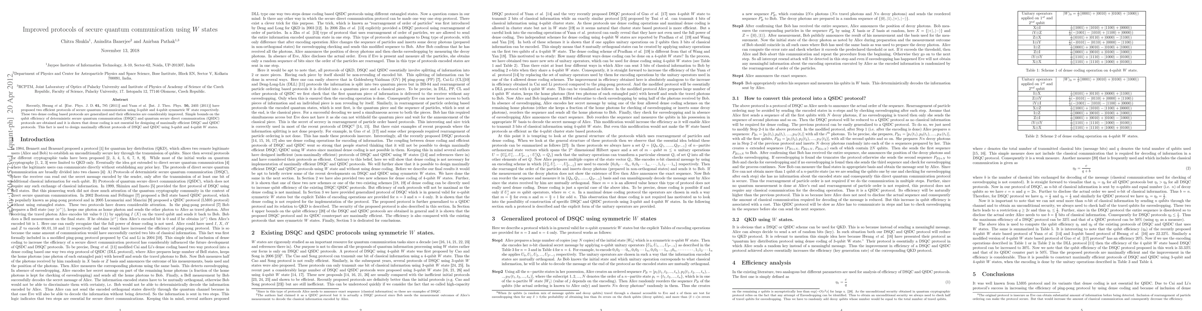 The paper generalizes and improves the efficiencies of two existing protocols for secure quantum communication using 3-qubit and 4-qubit W states, proposed by Hwang et al. and Yuan et al., respectively. It demonstrates that dense coding is not essential for designing maximally efficient deterministic secure quantum communication (DSQC) and quantum secure direct communication (QSDC) protocols.