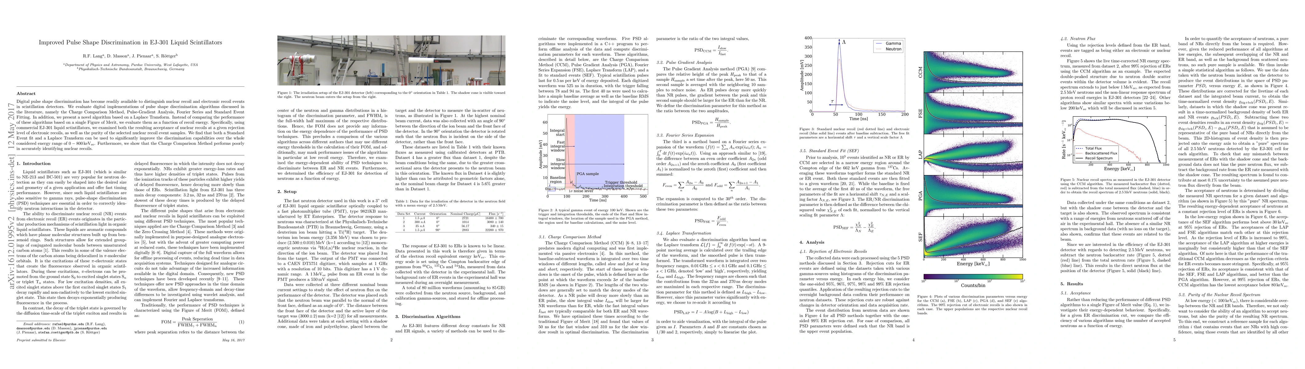 This paper evaluates various digital pulse shape discrimination algorithms for distinguishing nuclear and electronic recoils in EJ-301 liquid scintillators, finding that the Standard Event fitting and a novel Laplace Transform method significantly improve discrimination across energy ranges, while the Charge Comparison Method is less effective.