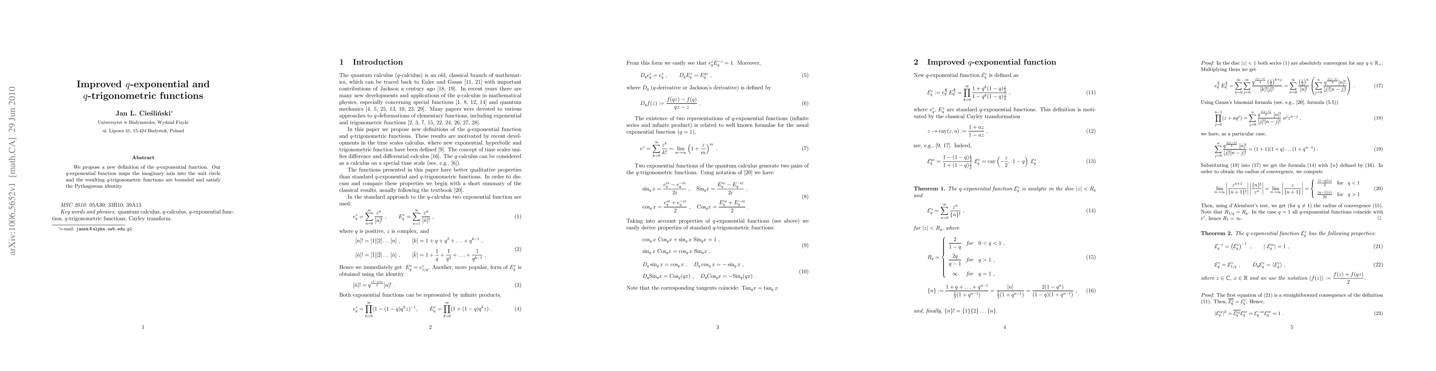 Summary: This paper introduces a novel definition of the q-exponential function that maps the imaginary axis to the unit circle, leading to bounded q-trigonometric functions that adhere to the Pythagorean identity.