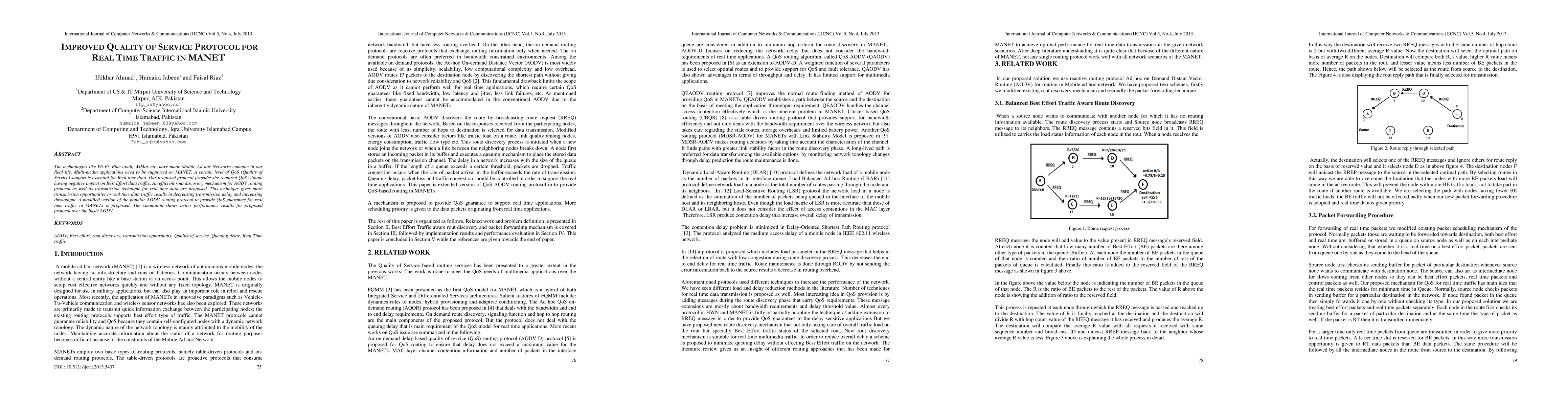 A modified version of basic AODV is proposed for real-time traffic over Mobile Ad Hoc Networks.