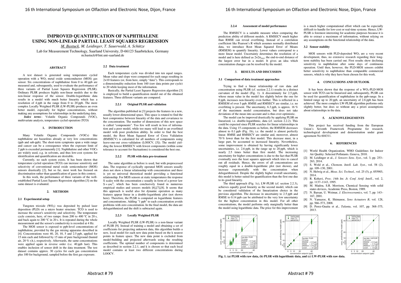A test dataset is generated using temperature cycled operation with a WO3 metal oxide semiconductor (MOS) gas sensor. Six concentrations of naphthalene from 0 to 40 ppb are measured and, subsequently, used to evaluate the performance of three variants of Partial Least Squares Regression (PLSR). Ordinary PLSR produces highly non-linear models due to the non-linear response of the sensor. Double-logarithmic data results in a model with much better linearity which has a resolution of 4 ppb in the range from 0 to 20 ppb. The more complex Locally Weighted PLSR (LW-PLSR) produces an even better model, especially for higher concentrations, without making any assumptions for relationships in the underlying data.