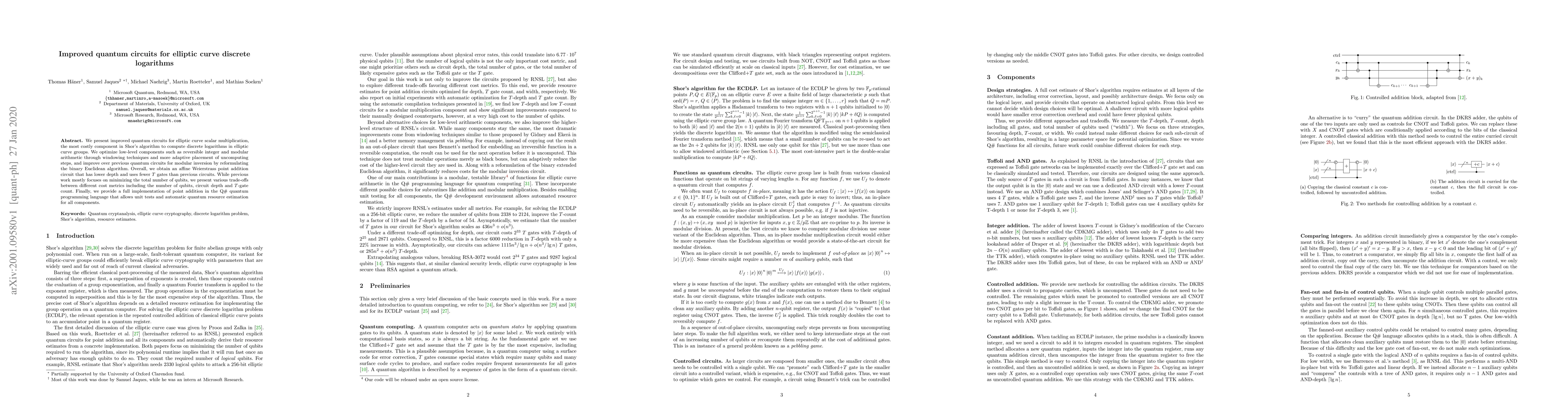 This paper optimizes quantum circuits for elliptic curve scalar multiplication, crucial in Shor's algorithm for discrete logarithms, by improving reversible arithmetic and modular inversion. The authors present trade-offs between various cost metrics and provide a full implementation in Q#, enhancing both circuit depth and $T$-gate efficiency.