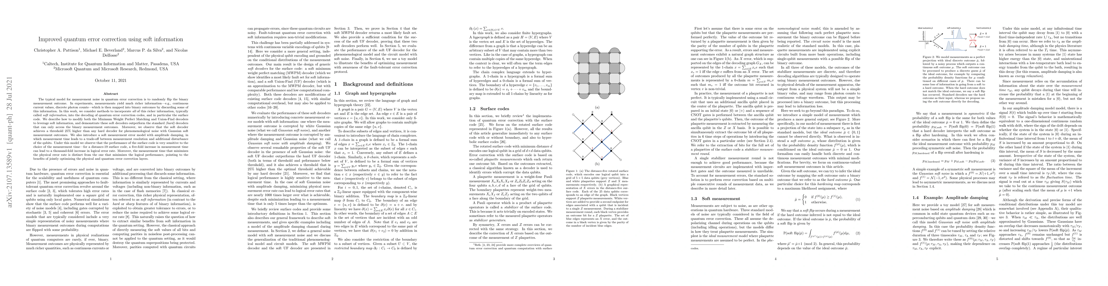 This paper proposes methods to incorporate "soft information" from richer measurement outcomes into quantum error correction, particularly for the surface code, outperforming standard binary-based (hard) decoders. It demonstrates a 25% higher threshold with soft decoders under Gaussian noise and introduces a measurement error model that highlights the trade-off between measurement resolution and qubit disturbance, showing distinct optimal measurement times for minimizing physical and logical error rates.
