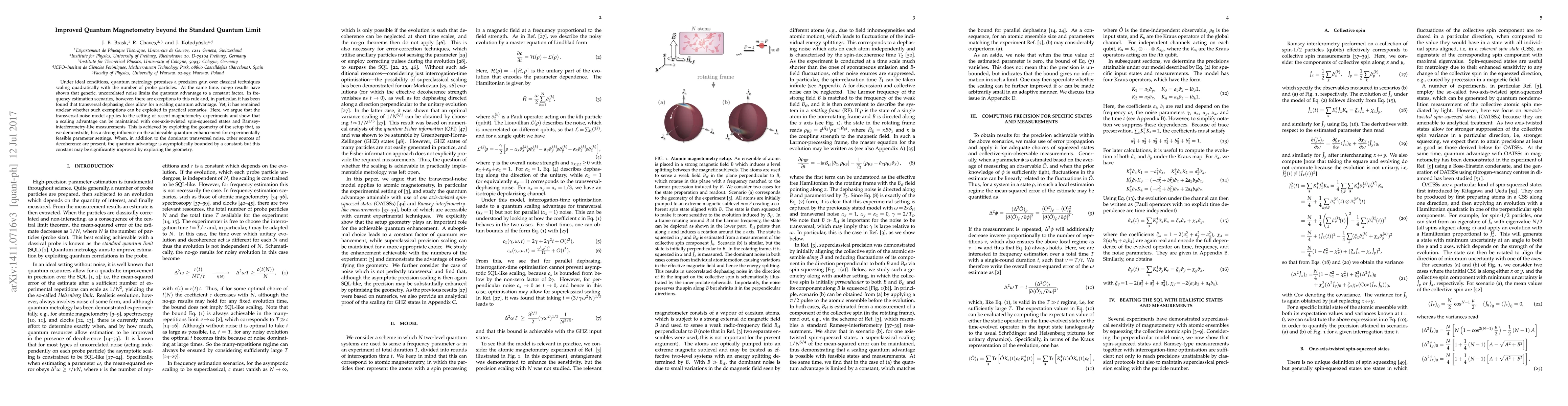 Under ideal conditions, quantum metrology promises a precision gain over classical techniques scaling quadratically with the number of probe particles. At the same time, no-go results have shown that generic, uncorrelated noise limits the quantum advantage to a constant factor. In frequency estimation scenarios, however, there are exceptions to this rule and, in particular, it has been found that transversal dephasing does allow for a scaling quantum advantage. Yet, it has remained unclear whether such exemptions can be exploited in practical scenarios. Here, we argue that the transversal-noise model applies to the setting of recent magnetometry experiments and show that a scaling advantage can be maintained with one-axis-twisted spin-squeezed states and Ramsey-interferometry-like measurements. This is achieved by exploiting the geometry of the setup that, as we demonstrate, has a strong influence on the achievable quantum enhancement for experimentally feasible parameter settings. When, in addition to the dominant transversal noise, other sources of decoherence are present, the quantum advantage is asymptotically bounded by a constant, but this constant may be significantly improved by exploring the geometry.