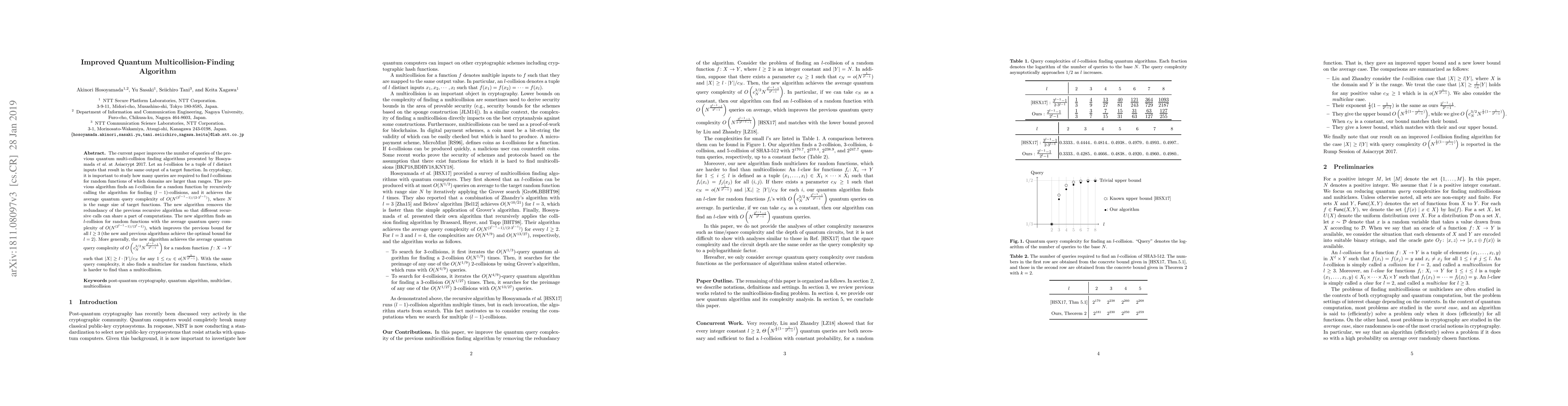 The paper presents an improved quantum algorithm for finding $l$-collisions in random functions, reducing the average quantum query complexity from $O(N^{(3^{l-1}-1) / (2 \cdot 3^{l-1})})$ to $O(N^{(2^{l-1}-1) / (2^{l}-1)})$ for $l\ge 3$. It also finds multiclaws with the same efficiency.
