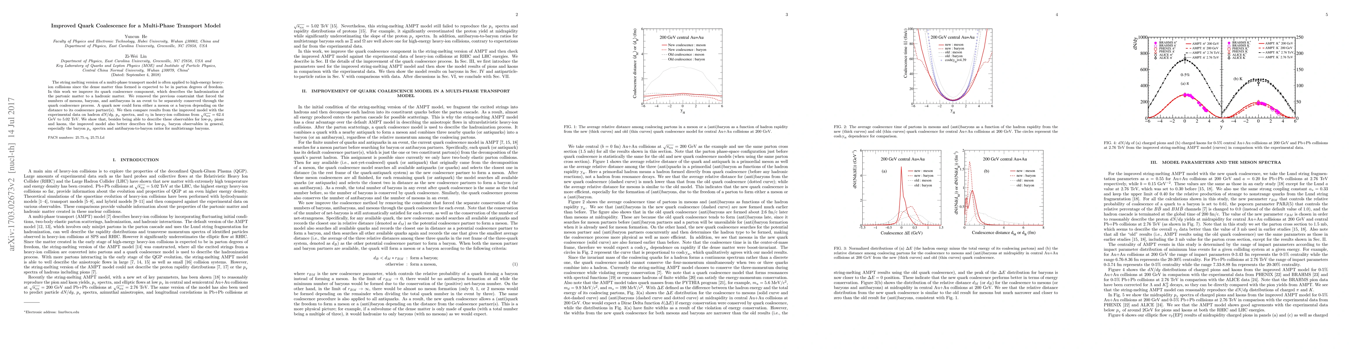 This research improves the quark coalescence component of a multi-phase transport model, allowing quarks to form mesons or baryons based on proximity rather than strict conservation constraints. The enhanced model shows better agreement with experimental data on hadron spectra and elliptic flow in heavy-ion collisions across various energies.