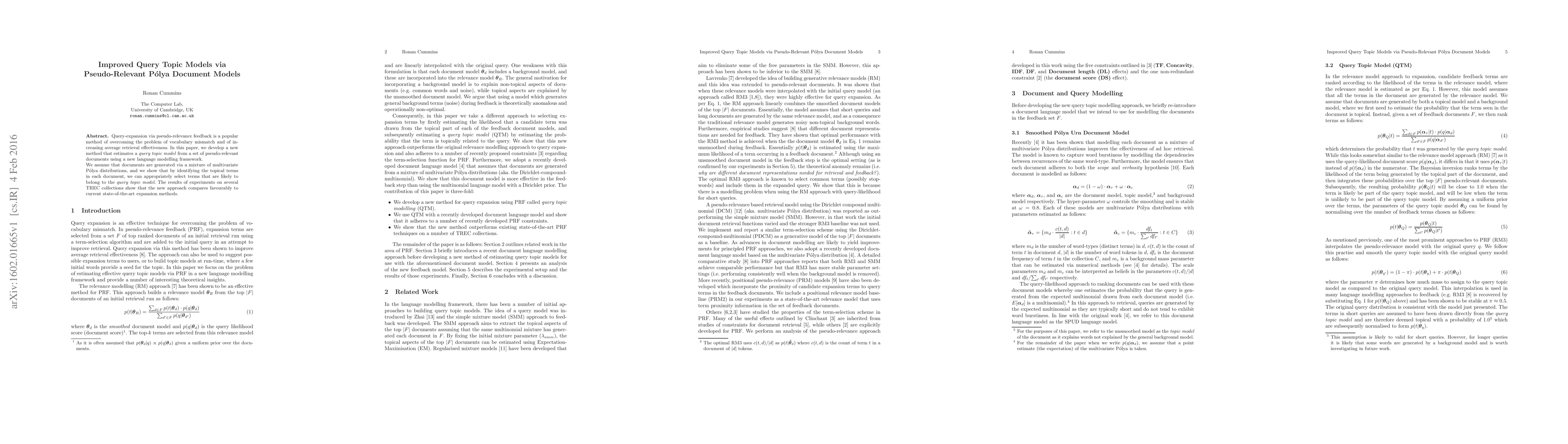 This paper proposes a novel method for query-expansion using pseudo-relevant documents to address vocabulary mismatch and improve retrieval effectiveness. It employs a Polya document model to identify topical terms, demonstrating superior performance compared to existing techniques in TREC collections.