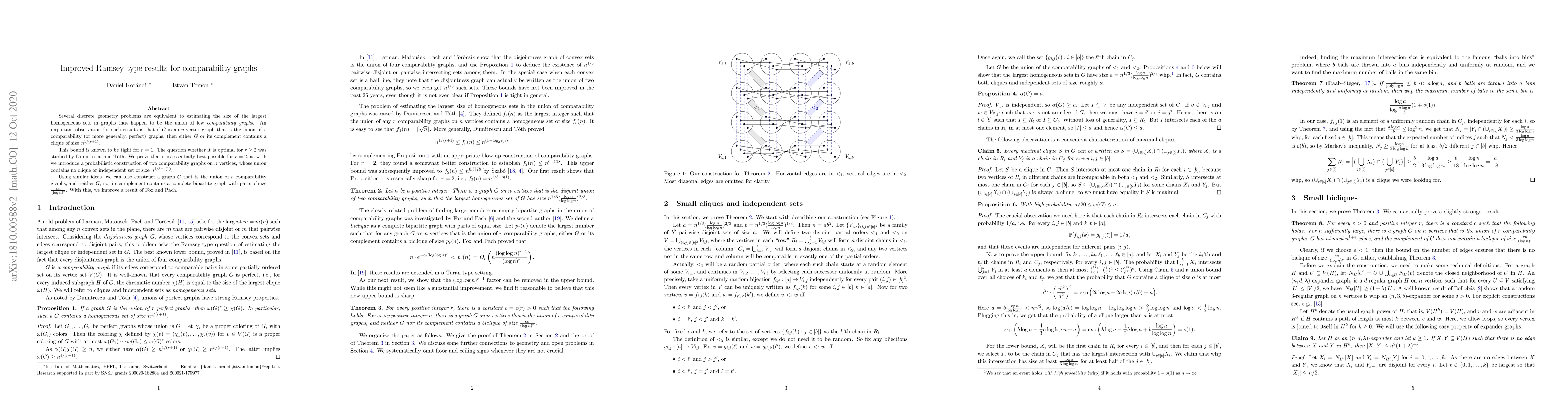 Several discrete geometry problems are equivalent to estimating the size of the largest homogeneous sets in graphs that happen to be the union of few comparability graphs. An important observation for such results is that if $G$ is an $n$-vertex graph that is the union of $r$ comparability (or more generally, perfect) graphs, then either $G$ or its complement contains a clique of size $n^{1/(r+1)}$. This bound is known to be tight for $r=1$. The question whether it is optimal for $r\ge 2$ was studied by Dumitrescu and T\'oth. We prove that it is essentially best possible for $r=2$, as well: we introduce a probabilistic construction of two comparability graphs on $n$ vertices, whose union contains no clique or independent set of size $n^{1/3+o(1)}$. Using similar ideas, we can also construct a graph $G$ that is the union of $r$ comparability graphs, and neither $G$, nor its complement contains a complete bipartite graph with parts of size $\frac{cn}{(\log n)^r}$. With this, we improve a result of Fox and Pach.