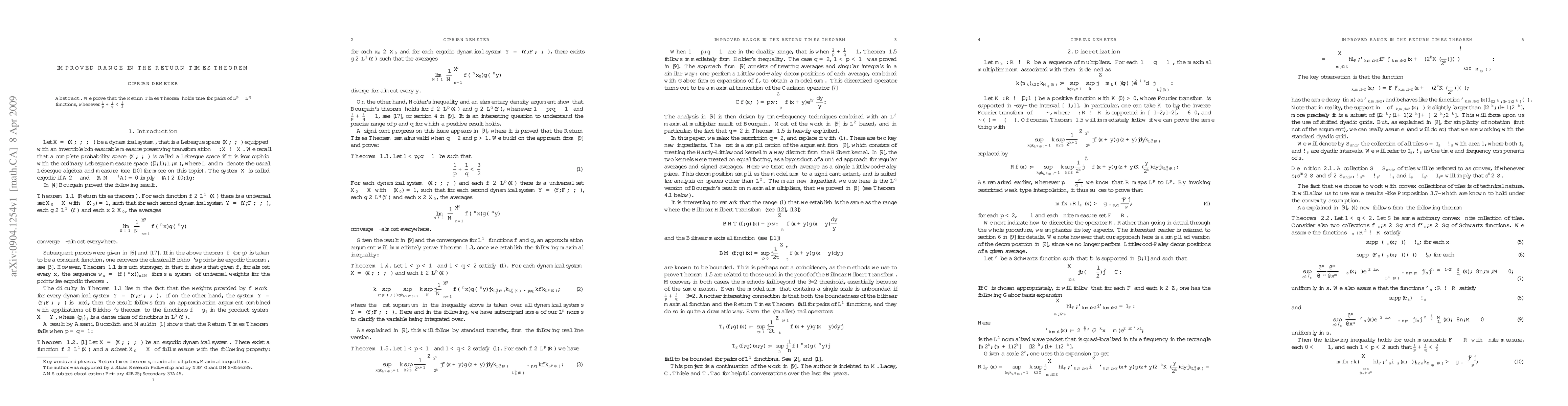 Summary: This paper demonstrates that the Return Times Theorem applies to pairs of $L^p-L^q$ functions under the condition that $\frac{1}{p}+\frac{1}{q}<{3/2}$, thereby expanding the theorem's range.