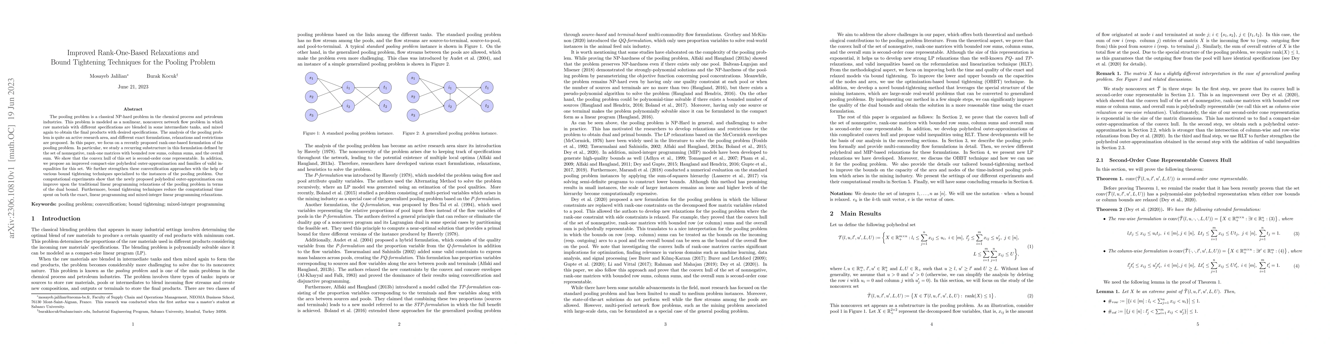This paper proposes enhanced rank-one-based relaxations and bound tightening techniques for the NP-hard pooling problem, showing that the convex hull of a specific set of matrices is second-order cone representable. Computational experiments demonstrate improved dual bounds and reduced computational time compared to traditional linear programming relaxations.