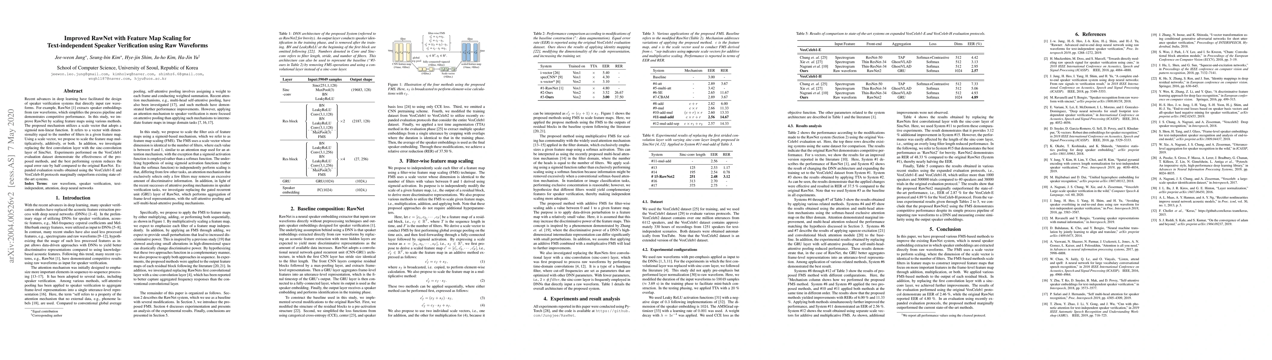 This paper enhances the RawNet model for speaker verification by introducing feature map scaling techniques and replacing the initial convolution layer with SincNet's sinc-convolution. Experiments show significant improvements, halving the equal error rate on VoxCeleb1 and outperforming existing state-of-the-art systems on extended datasets.