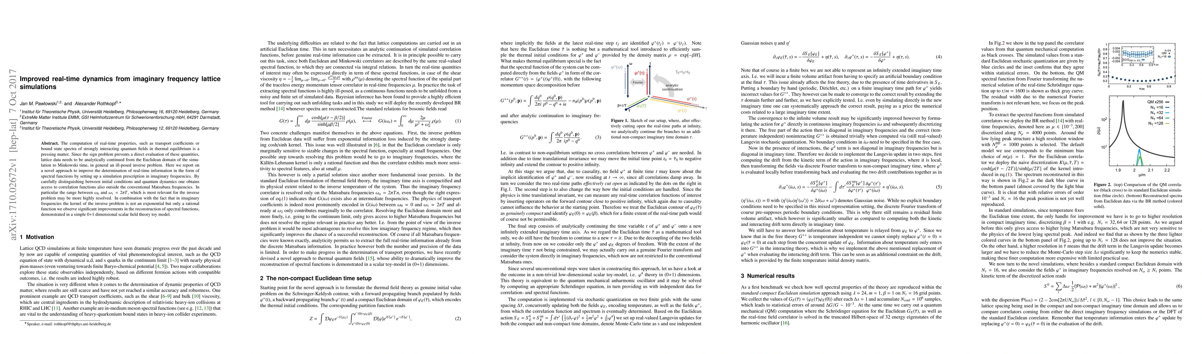 The computation of real-time properties, such as transport coefficients or bound state spectra of strongly interacting quantum fields in thermal equilibrium is a pressing matter. Since the sign problem prevents a direct evaluation of these quantities, lattice data needs to be analytically continued from the Euclidean domain of the simulation to Minkowski time, in general an ill-posed inverse problem. Here we report on a novel approach to improve the determination of real-time information in the form of spectral functions by setting up a simulation prescription in imaginary frequencies. By carefully distinguishing between initial conditions and quantum dynamics one obtains access to correlation functions also outside the conventional Matsubara frequencies. In particular the range between $\omega_0$ and $\omega_1=2\pi T$, which is most relevant for the inverse problem may be more highly resolved. In combination with the fact that in imaginary frequencies the kernel of the inverse problem is not an exponential but only a rational function we observe significant improvements in the reconstruction of spectral functions, demonstrated in a simple 0+1 dimensional scalar field theory toy model.