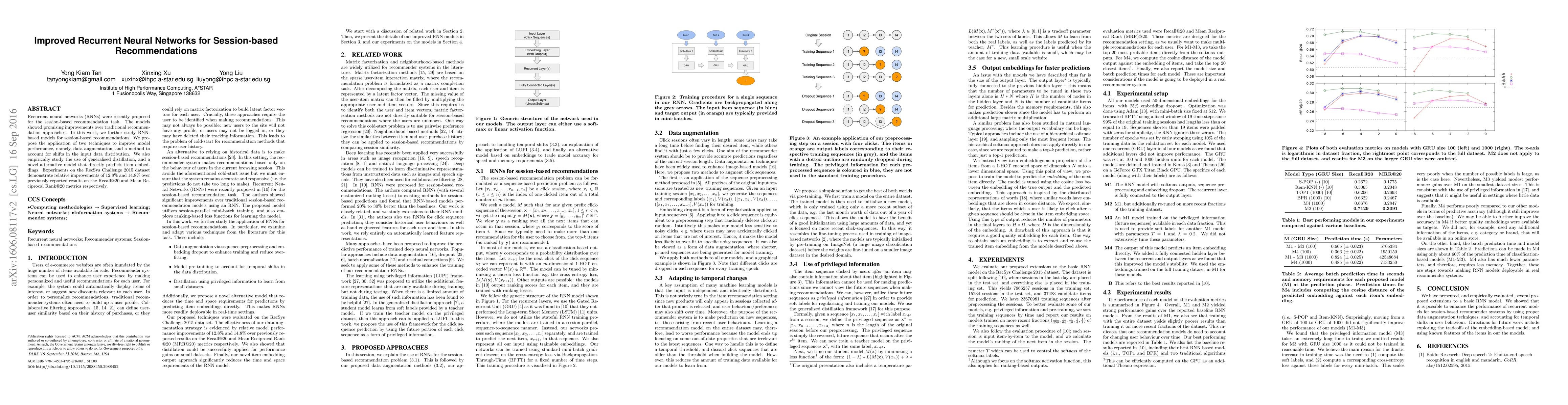 This research builds upon previous work on RNNs for session-based recommendations by proposing novel methods for data augmentation, adapting to temporal shifts, leveraging privileged information, and predicting item embeddings directly, leading to improved performance on the RecSys Challenge 2015 dataset.
