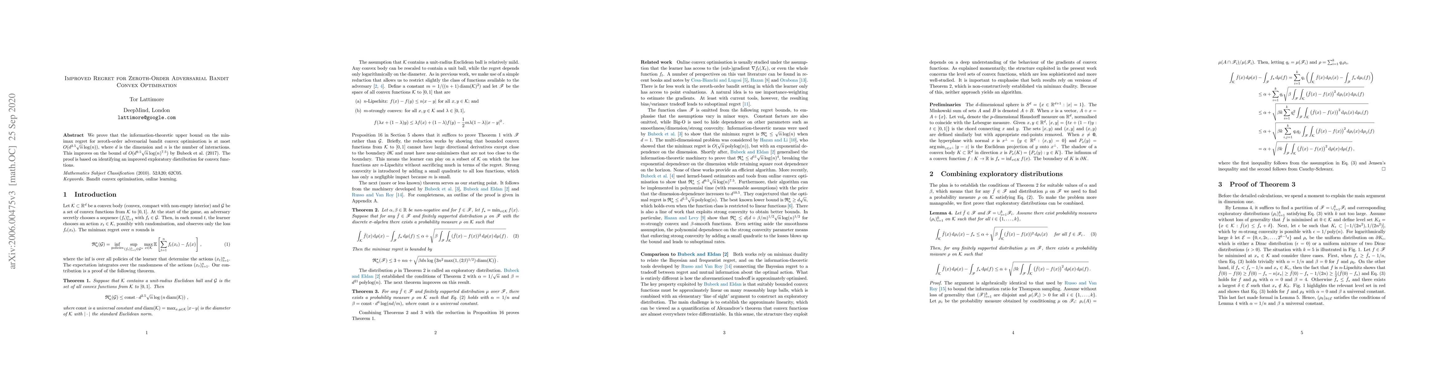 We prove that the information-theoretic upper bound on the minimax regret for zeroth-order adversarial bandit convex optimisation is at most $O(d^{2.5} \sqrt{n} \log(n))$, where $d$ is the dimension and $n$ is the number of interactions. This improves on $O(d^{9.5} \sqrt{n} \log(n)^{7.5}$ by Bubeck et al. (2017). The proof is based on identifying an improved exploratory distribution for convex functions.