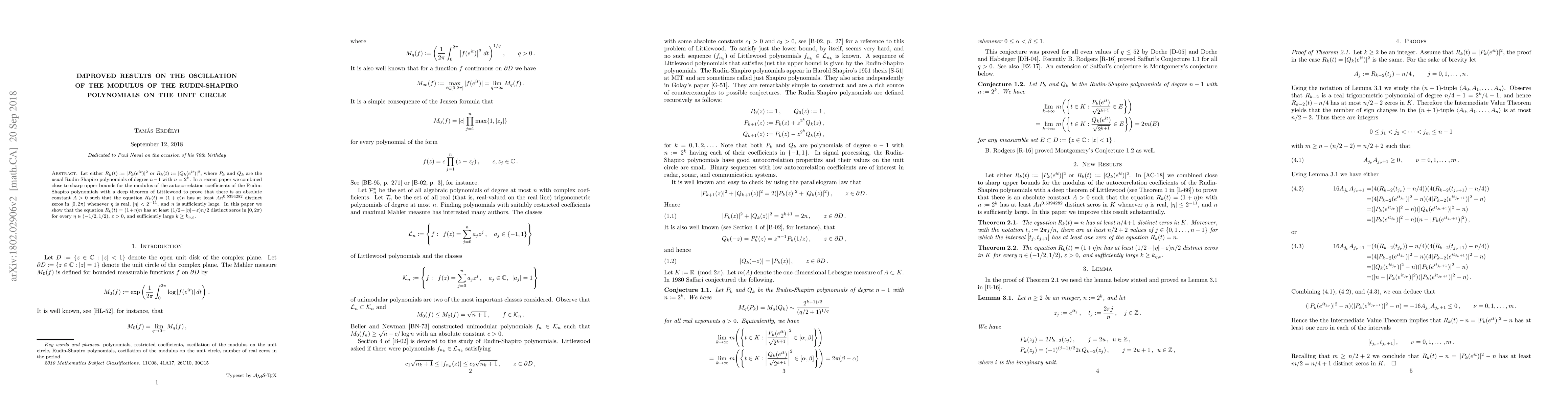 The main technical contribution of this research is the development of new techniques for studying the properties of Rudin-Shapiro polynomials, including the use of lacunary walks on Lie groups.