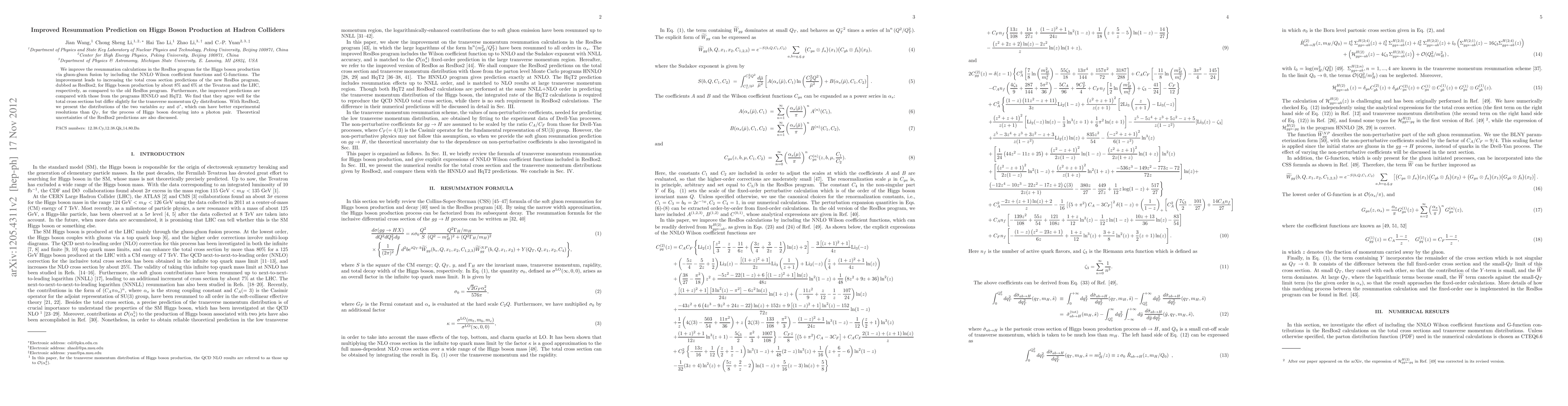 We improve the resummation calculations in the ResBos program for the Higgs boson production via gluon-gluon fusion by including the NNLO Wilson coefficient functions and G-functions. The improvement leads to increasing the total cross section predictions of the new ResBos program, dubbed as ResBos2, for Higgs boson production by about 8% and 6% at the Tevatron and the LHC, respectively, as compared to the old ResBos program. Furthermore, the improved predictions are compared with those from the programs HNNLO and HqT2. We find that they agree well for the total cross sections but differ slightly for the transverse momentum $Q_T$ distributions. With ResBos2, we present the distributions of the two variables $a_T$ and $\phi^{*}$, which can have better experimental resolutions than $Q_T$, for the process of Higgs boson decaying into a photon pair. Theoretical uncertainties of the ResBos2 predictions are also discussed.