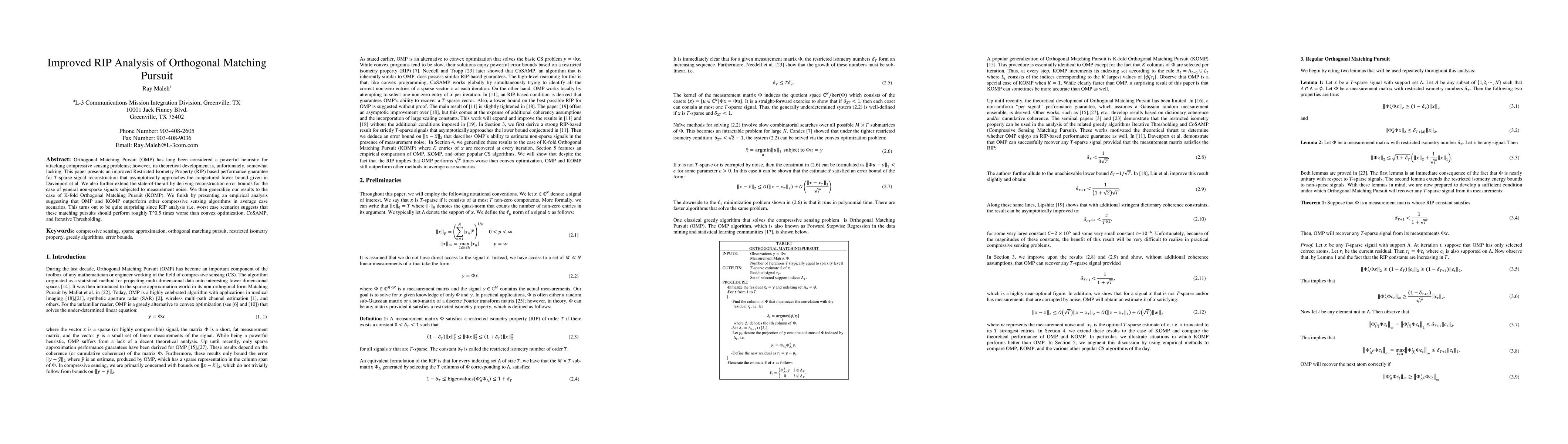Orthogonal Matching Pursuit (OMP) has long been considered a powerful heuristic for attacking compressive sensing problems; however, its theoretical development is, unfortunately, somewhat lacking. This paper presents an improved Restricted Isometry Property (RIP) based performance guarantee for T-sparse signal reconstruction that asymptotically approaches the conjectured lower bound given in Davenport et al. We also further extend the state-of-the-art by deriving reconstruction error bounds for the case of general non-sparse signals subjected to measurement noise. We then generalize our results to the case of K-fold Orthogonal Matching Pursuit (KOMP). We finish by presenting an empirical analysis suggesting that OMP and KOMP outperform other compressive sensing algorithms in average case scenarios. This turns out to be quite surprising since RIP analysis (i.e. worst case scenario) suggests that these matching pursuits should perform roughly T^0.5 times worse than convex optimization, CoSAMP, and Iterative Thresholding.