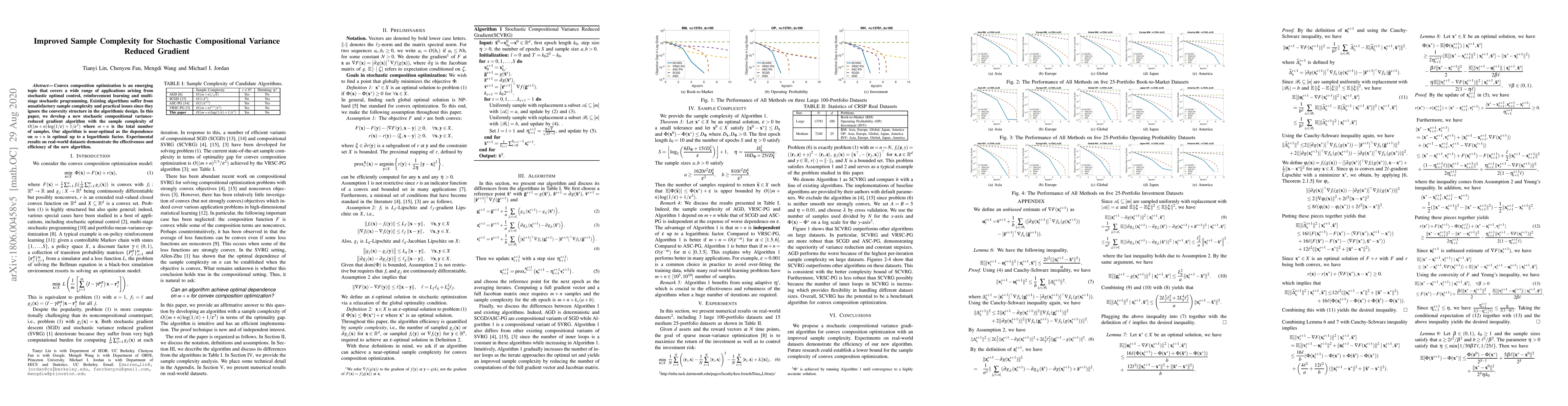 A new algorithm improves upon existing methods for convex composition optimization, achieving sample complexity of $O((m+n) imes ext{log}(1/ ext{epsilon})+1/ ext{epsilon}^3)$ with near-optimal performance.