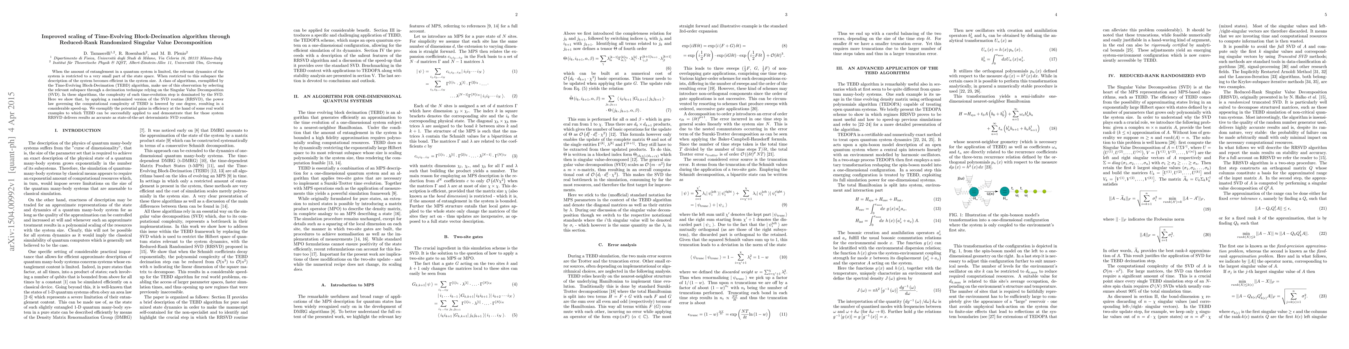 This paper improves the Time-Evolving Block-Decimation (TEBD) algorithm by incorporating a Reduced-Rank Randomized Singular Value Decomposition (RRSVD), which lowers the computational complexity and significantly speeds up the algorithm while maintaining accuracy.