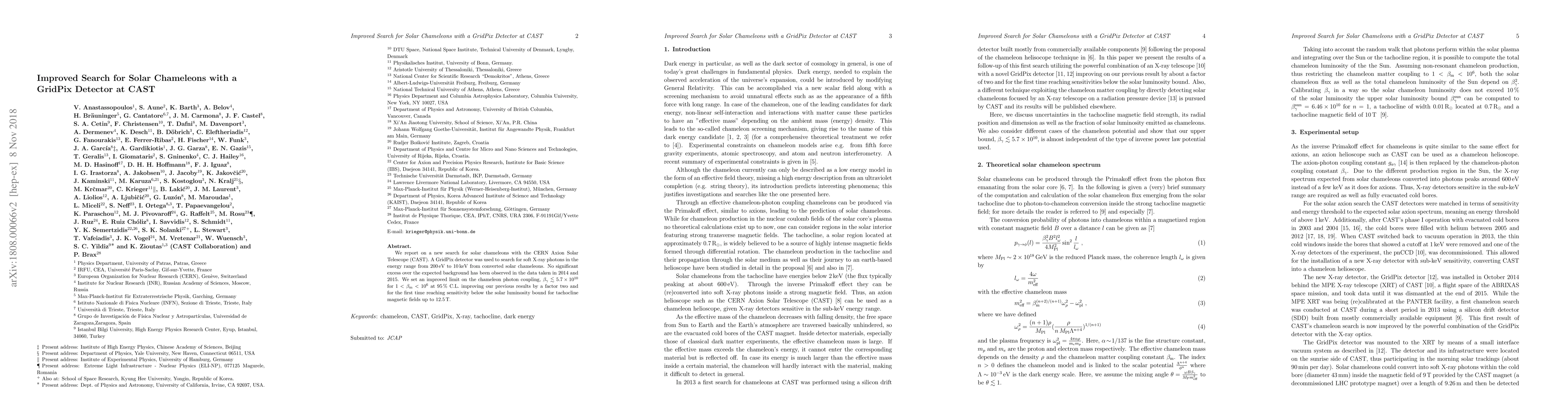 Researchers at CERN's CAST telescope used a GridPix detector to search for solar chameleons and set an improved limit on their photon coupling, improving previous results by a factor of two and reaching sensitivity below the solar luminosity bound.