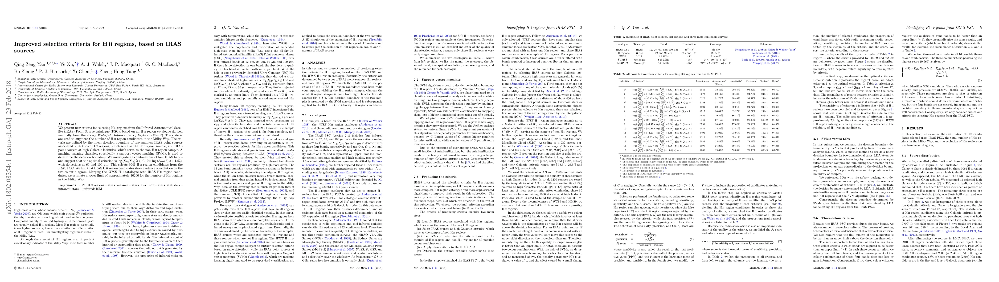 We present new criteria for selecting HII regions from the Infrared Astronomical Satellite (IRAS) Point Source catalogue (PSC), based on an HII region catalogue derived manually from the all-sky Wide-field Infrared Survey Explorer (WISE). The criteria are used to augment the number of HII region candidates in the Milky Way. The criteria are defined by the linear decision boundary of two samples: IRAS point sources associated with known HII regions, which serve as the HII region sample, and IRAS point sources at high Galactic latitudes, which serve as the non-HII region sample. A machine learning classifier, specifically a support vector machine (SVM), is used to determine the decision boundary. We investigate all combinations of four IRAS bands and suggest that the optimal criterion is log(F$_{\rm 60}$/F$_{\rm 12}$)$\ge$(-0.19$\times$log(F$_{\rm 100}$/F$_{\rm 25}$)+ 1.52), with detections at 60 and 100 micron. This selects 3041 HII region candidates from the IRAS PSC. We find that IRAS HII region candidates show evidence of evolution on the two-colour diagram. Merging the WISE HII catalogue with IRAS HII region candidates, we estimate a lower limit of approximately 10200 for the number of HII regions in the Milky Way.
